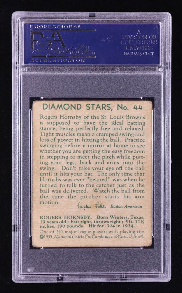 Rogers Hornsby 1935 Diamond Stars #44 (PSA 3)