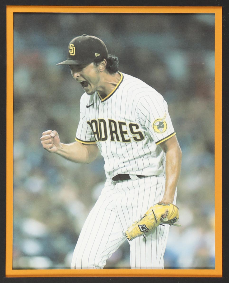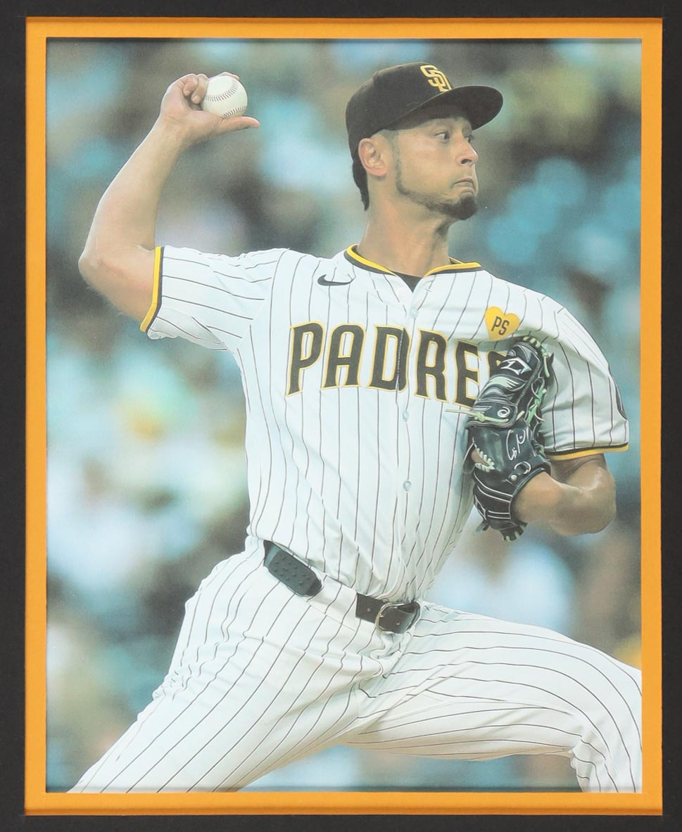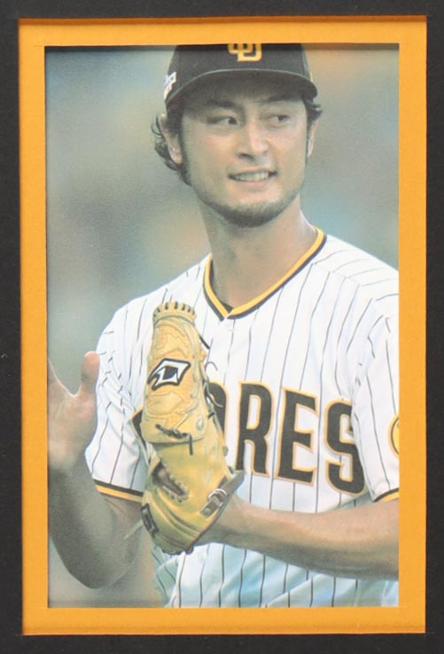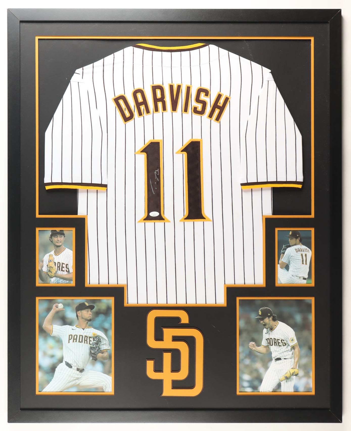 Custom frame measures approximately 34" x 42" in size and features a jersey that has been hand-signed by Yu Darvish.