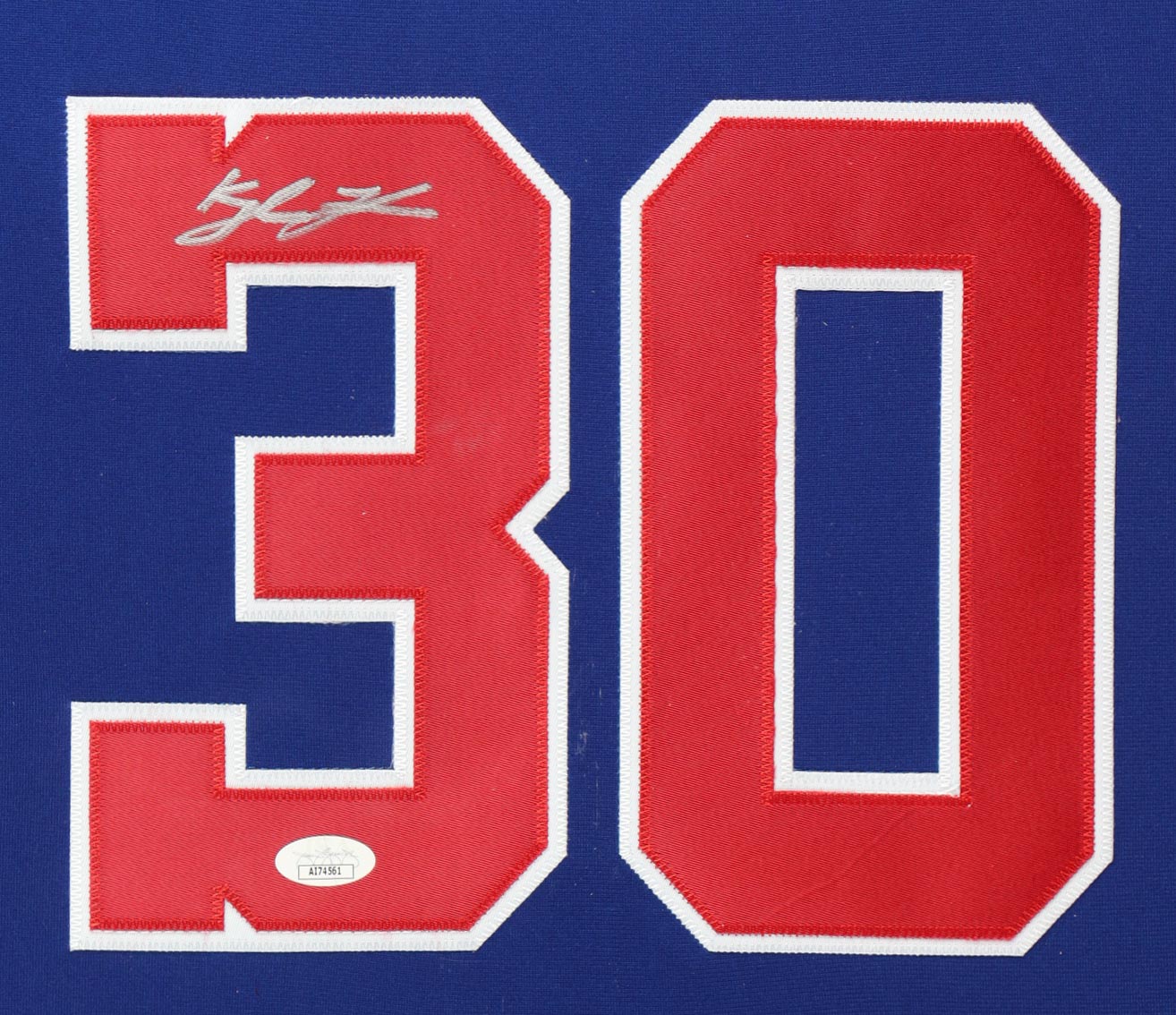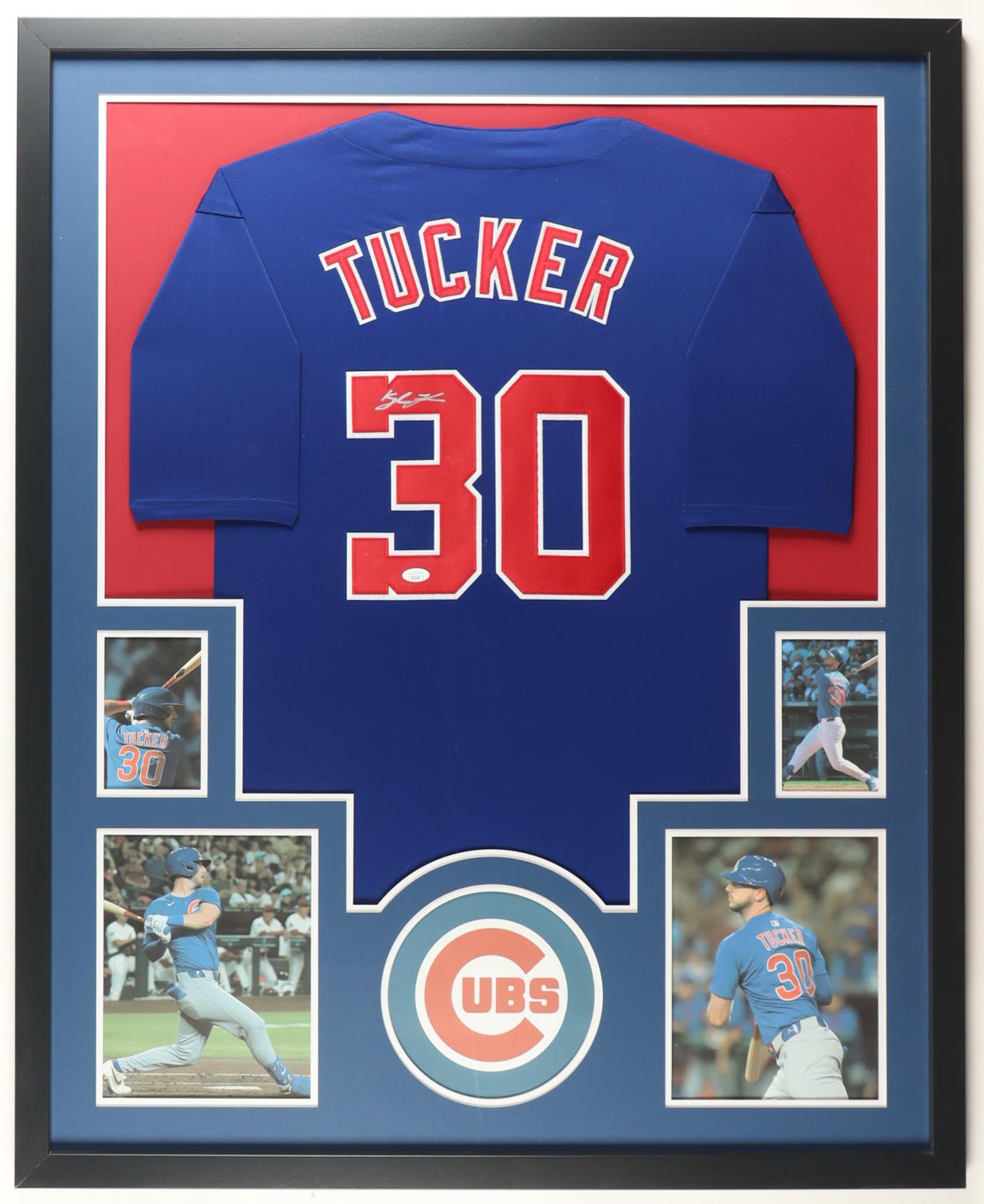 Custom frame measures approximately 34" x 42" in size and features a jersey that has been hand-signed by Kyle Tucker.