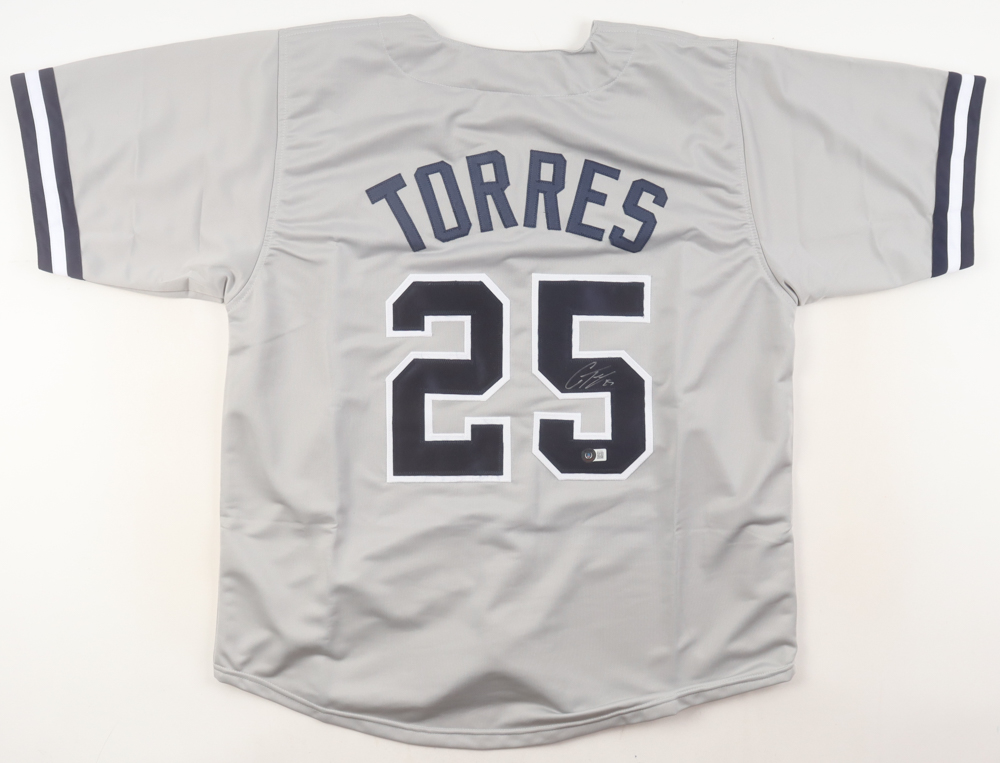 Custom jersey with everything sewn on, size XL. Hand-signed by Gleyber Torres.