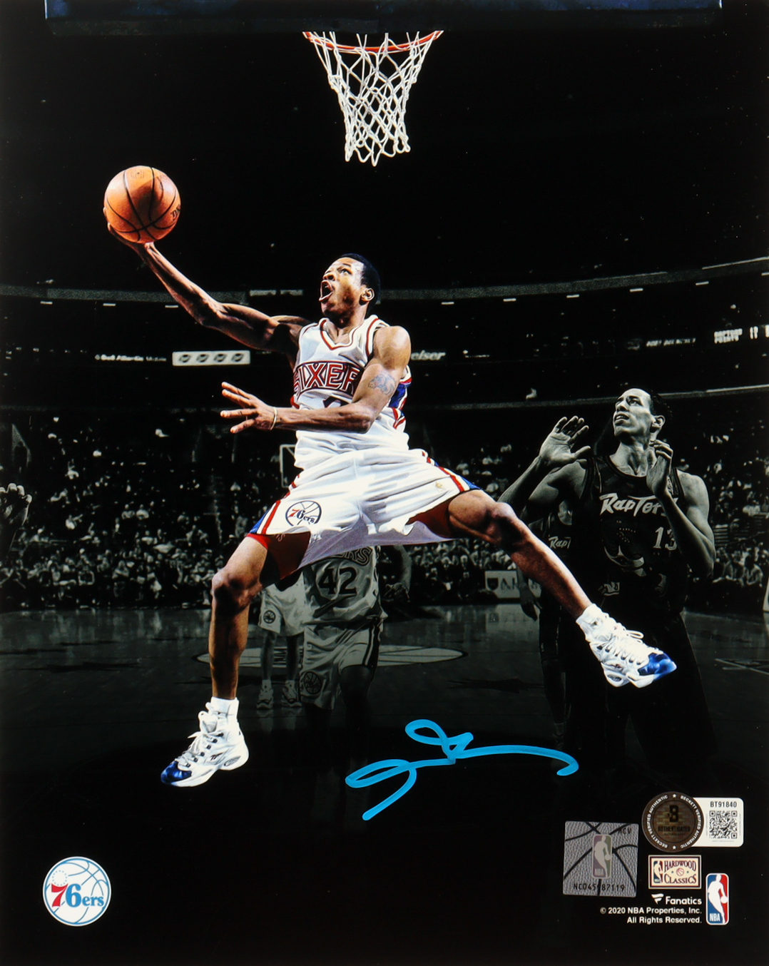 Photo measures 8" x 10" in size and has been hand-signed by Allen Iverson (Philadelphia 76ers, HOF).