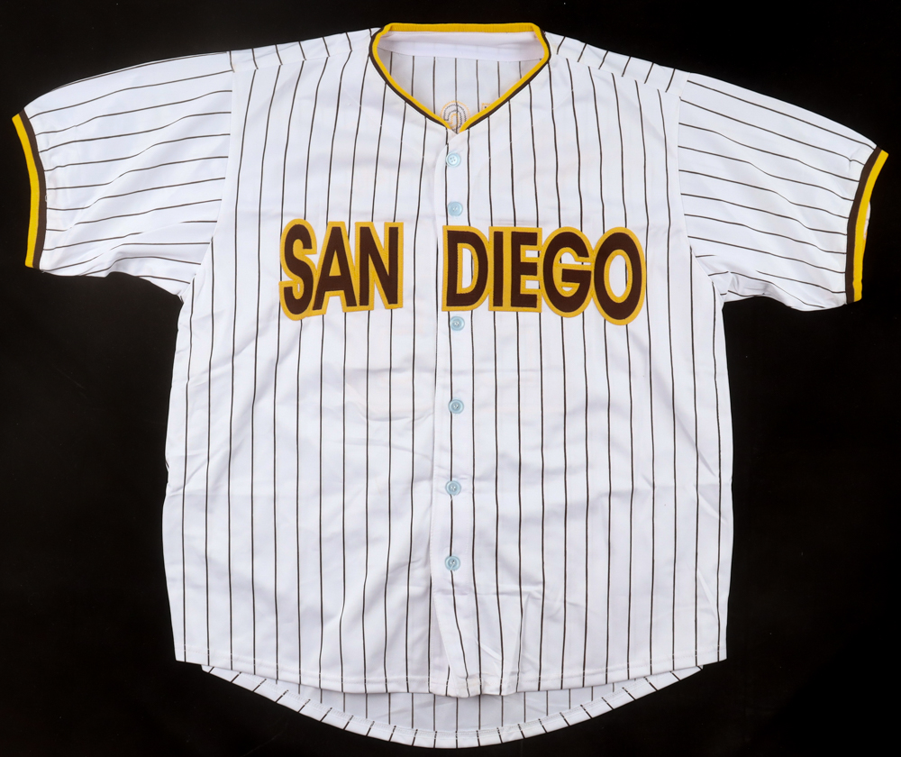 Custom jersey with everything sewn on, size XL. Hand-signed by Fernando Tatis Jr.