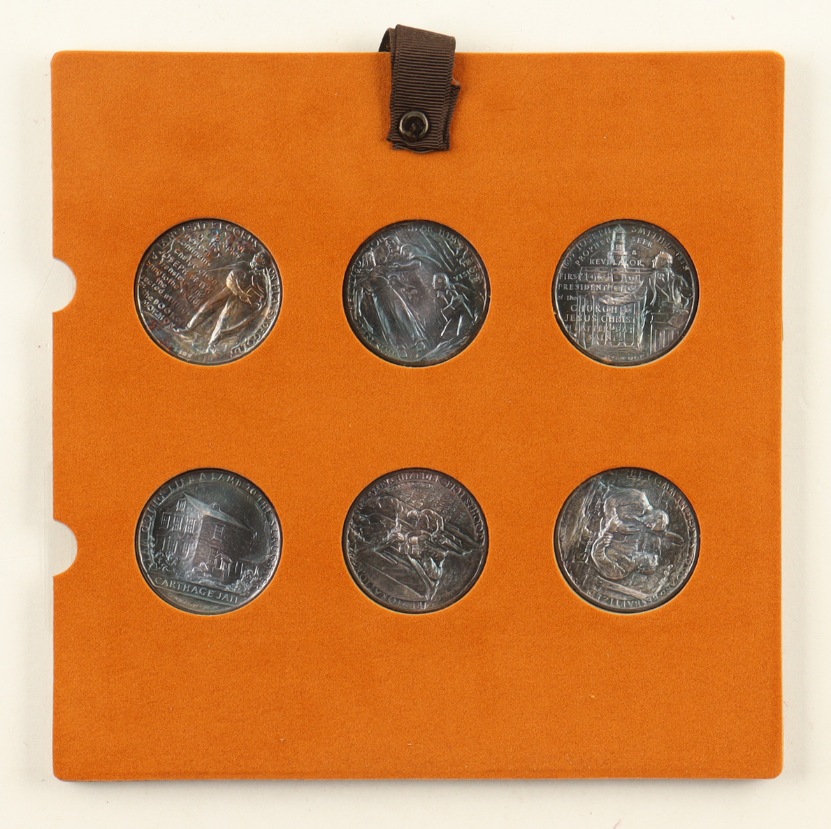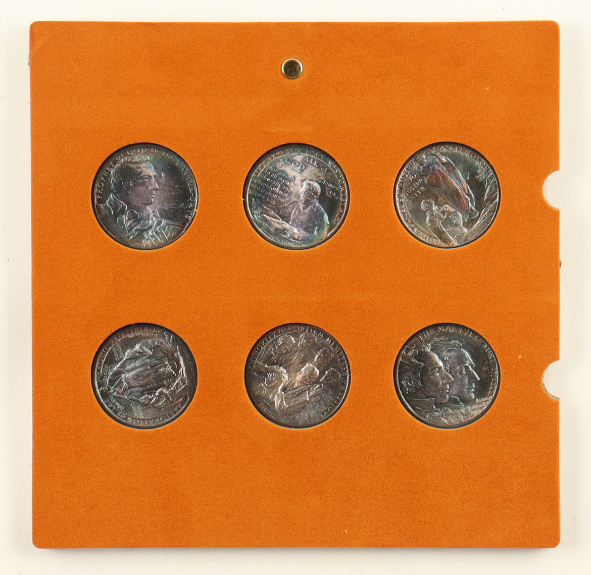 Collection includes six medallions; each commemorates a sacred event in the life of Joseph Smith, the first prophet of the Church of Jesus Christ of Latter-day Saints. The Vision; The Golden Plates; The Restoration of the Aaronic Priesthood; The Restoration of the Melchizedek Priesthood; The Martyrs.