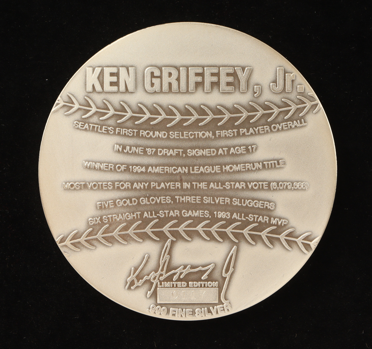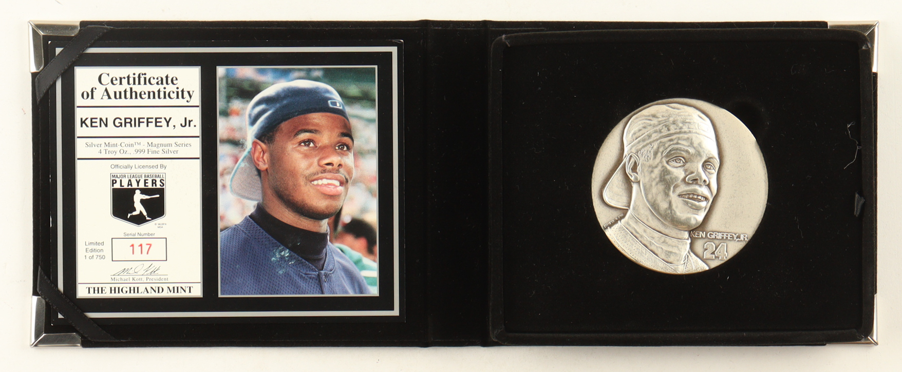 Ken Griffey Jr. LE The Highland Mint Magnum Series 4 Troy Oz. Fine Silver Mint-Coin with Display Case