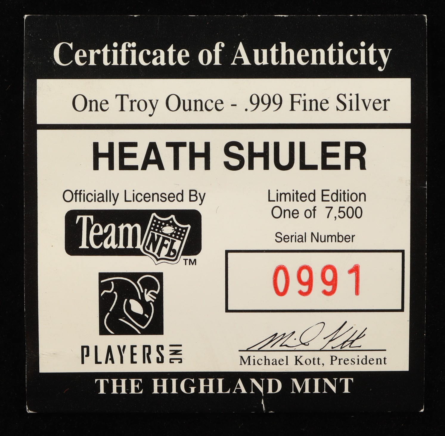 Heath Shuler LE The Highland Mint 1oz Fine Silver Coin