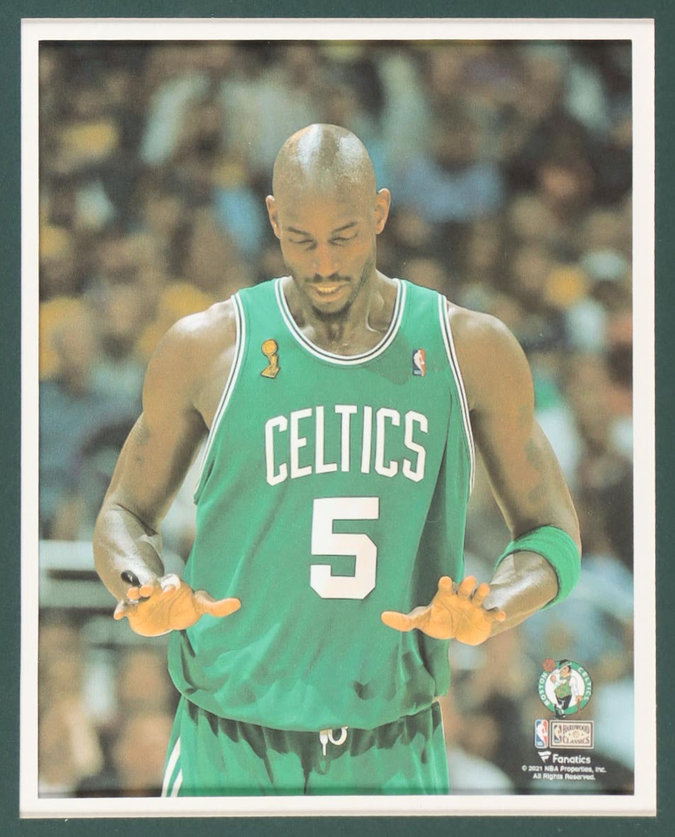 Custom frame measures approximately 34" x 42" in size and features a jersey that has been hand-signed by Kevin Garnett (HOF).
