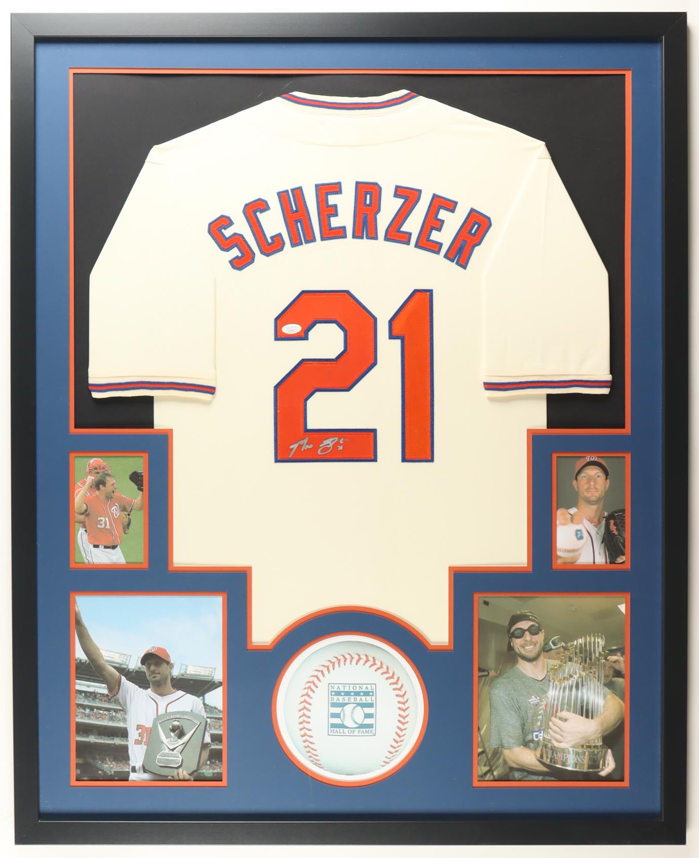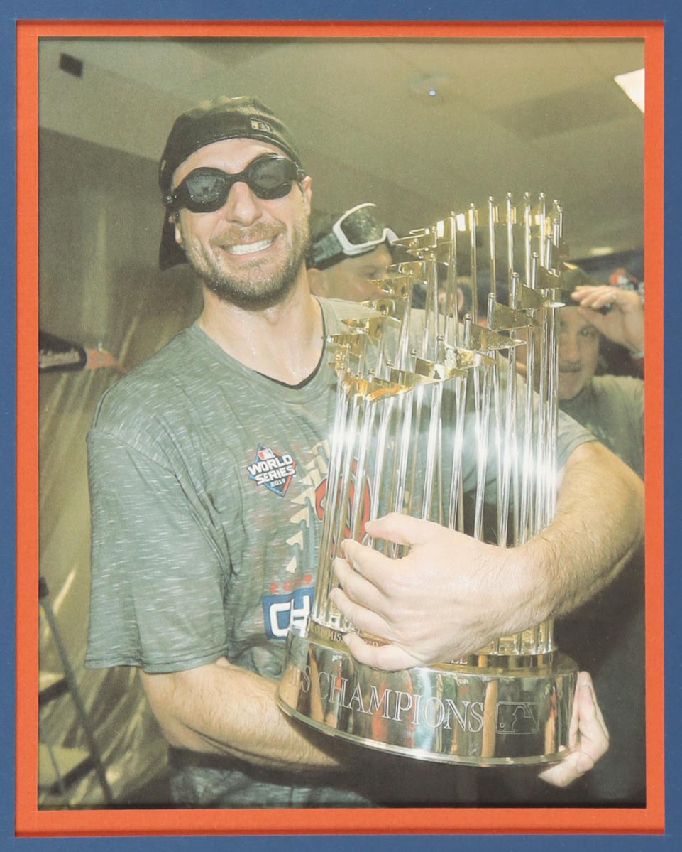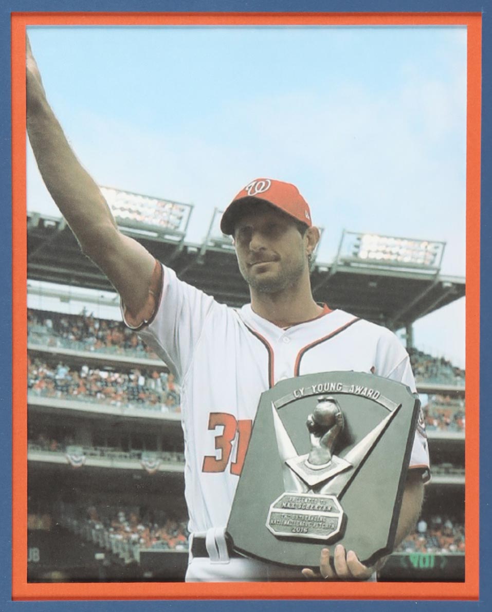 Custom frame measures approximately 34" x 42" in size and features a jersey that has been hand-signed by Max Scherzer.