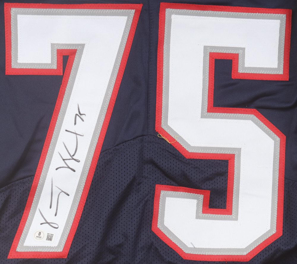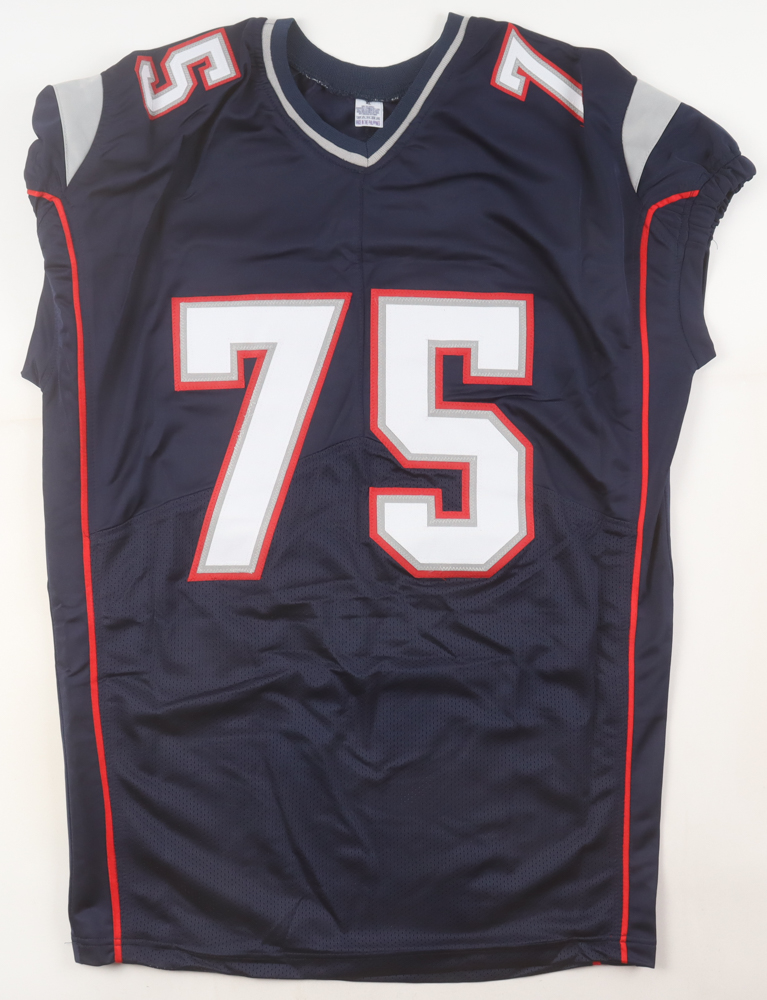 Custom jersey with everything sewn on, size XL. Hand-signed by Vince Wilfork (New England Patriots).