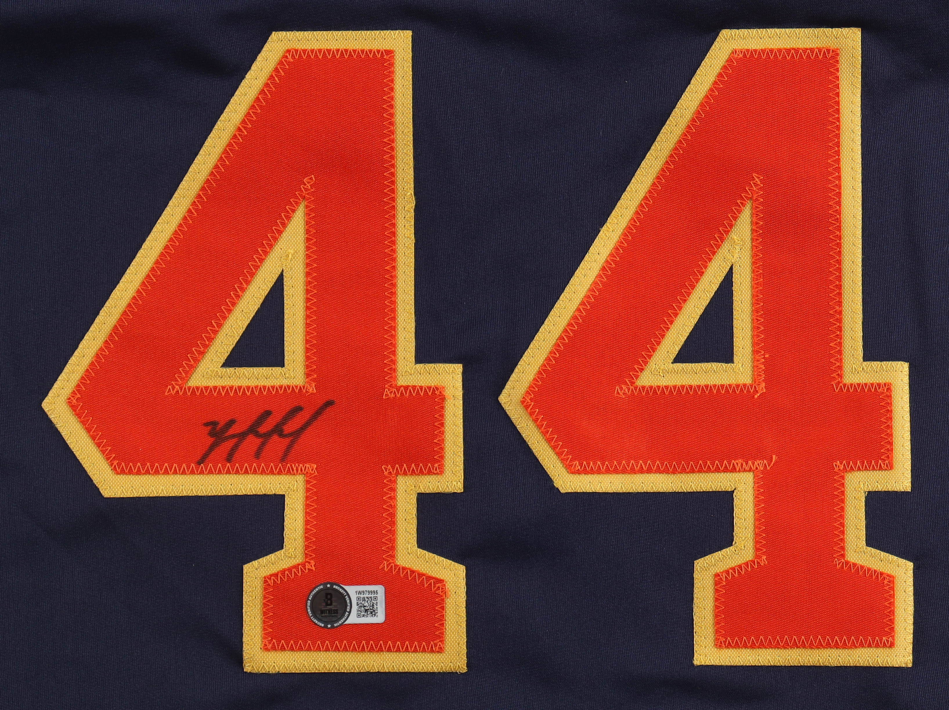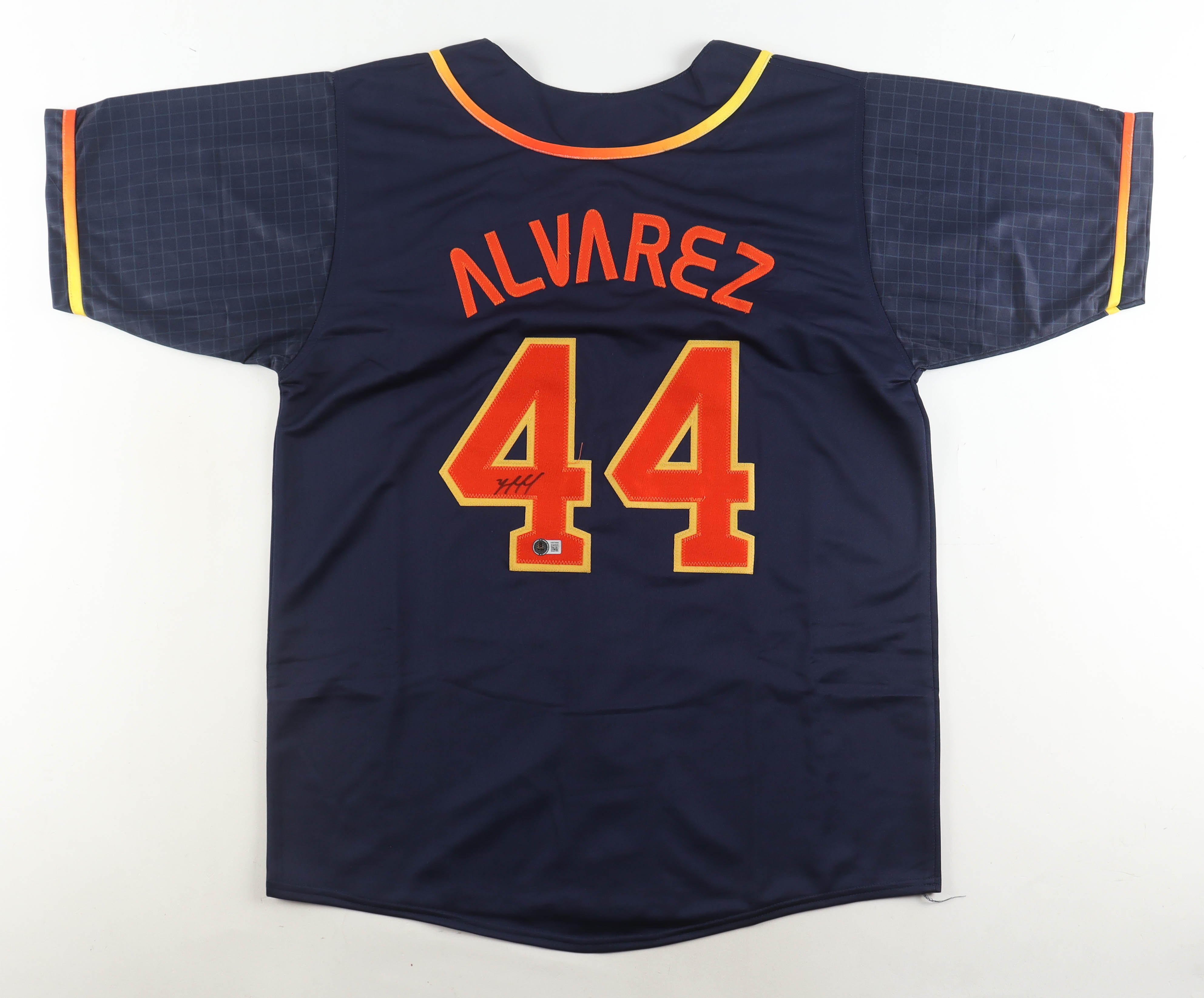 Custom jersey with everything sewn on, size XL. Hand-signed by Yordan Alvarez.