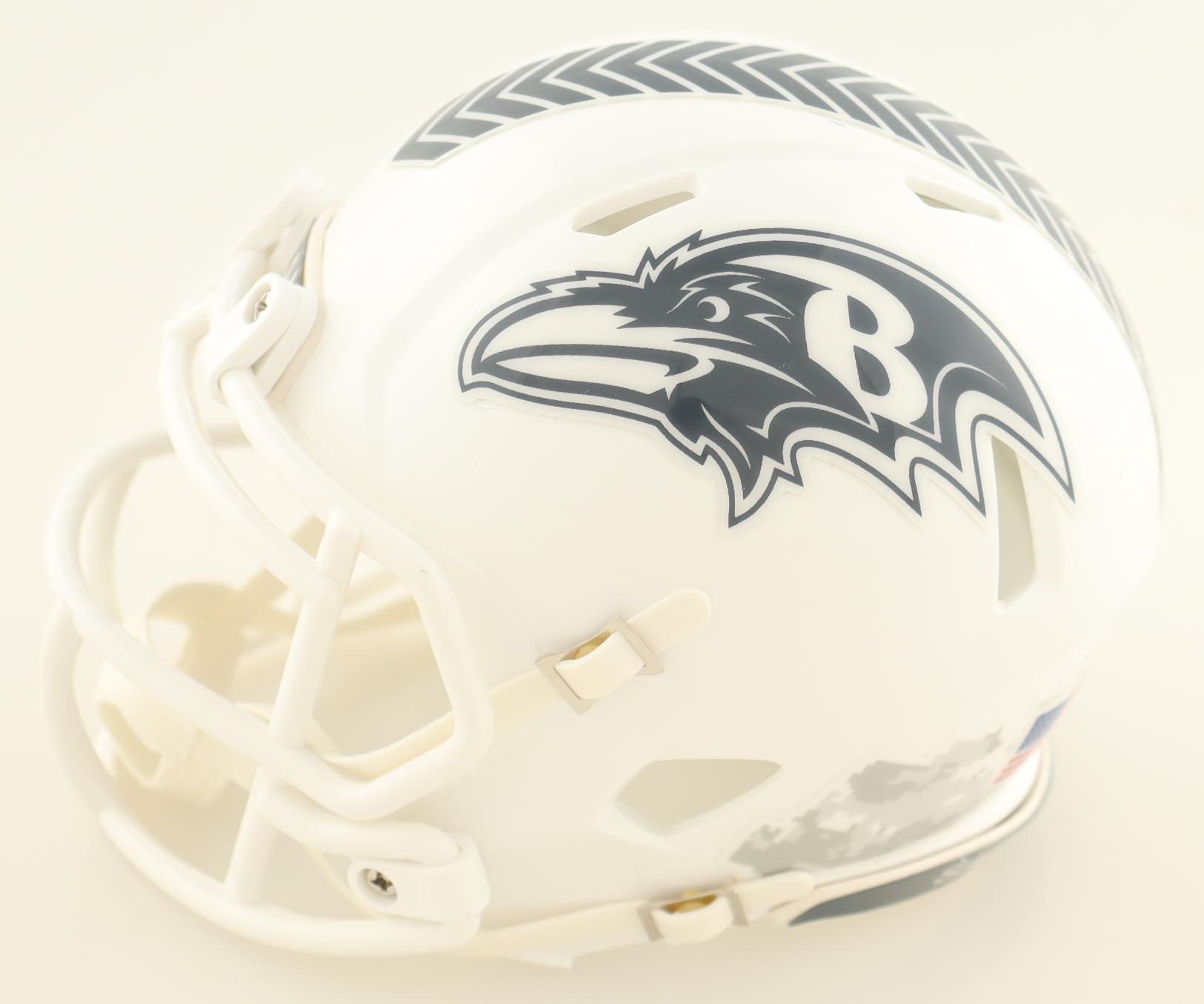 Riddell Baltimore Ravens Salute To Service Alternate Speed mini helmet. Hand-signed by Derrick Henry.
