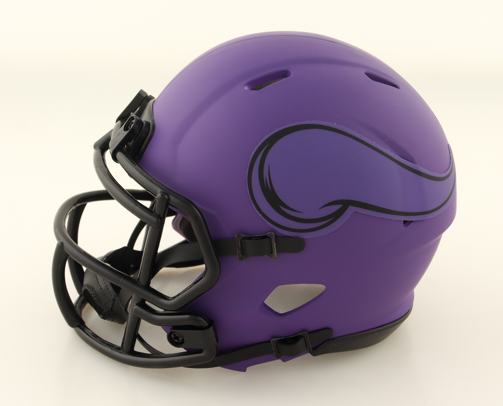 Riddell Minnesota Vikings Rave Alternate speed mini helmet. Hand-signed by Daunte Culpepper.