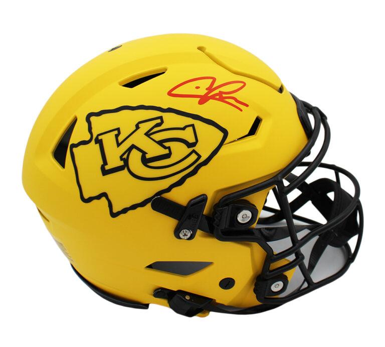 Riddell Kansas City Chiefs full-size authentic on-field rave alternate speedflex helmet. Hand-signed by Chris Jones.