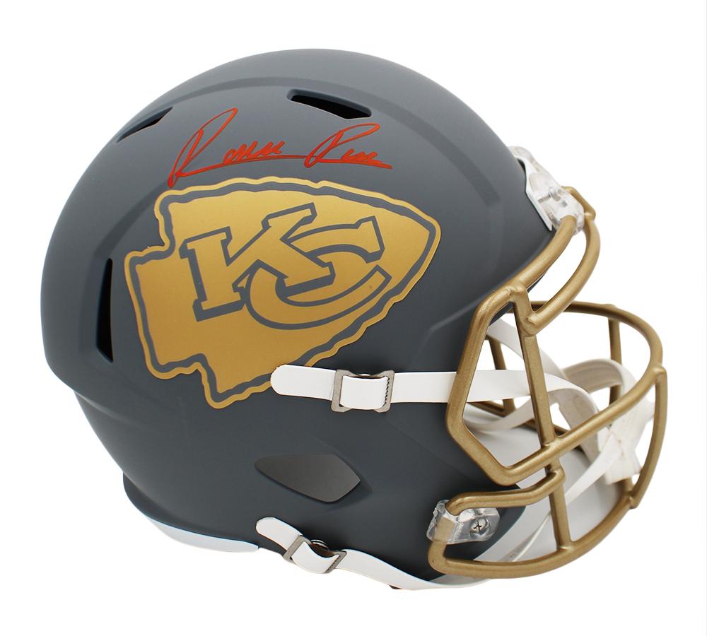 Riddell Kansas City Chiefs full-size slate alternate speed replica helmet. Hand-signed by Rashee Rice.
