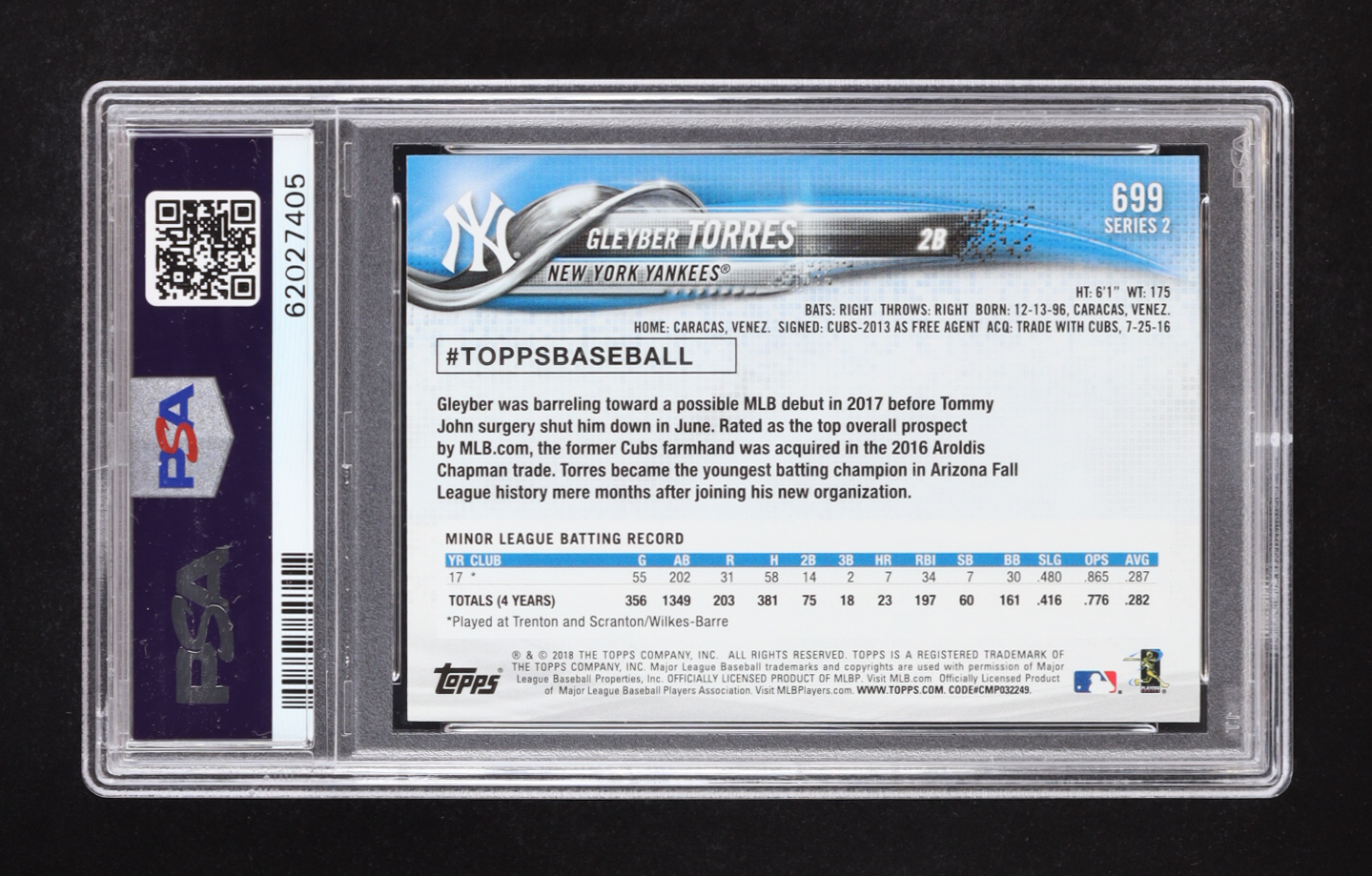 Gleyber Torres 2018 Topps Base Set Photo Variations #699B RC (PSA 10)