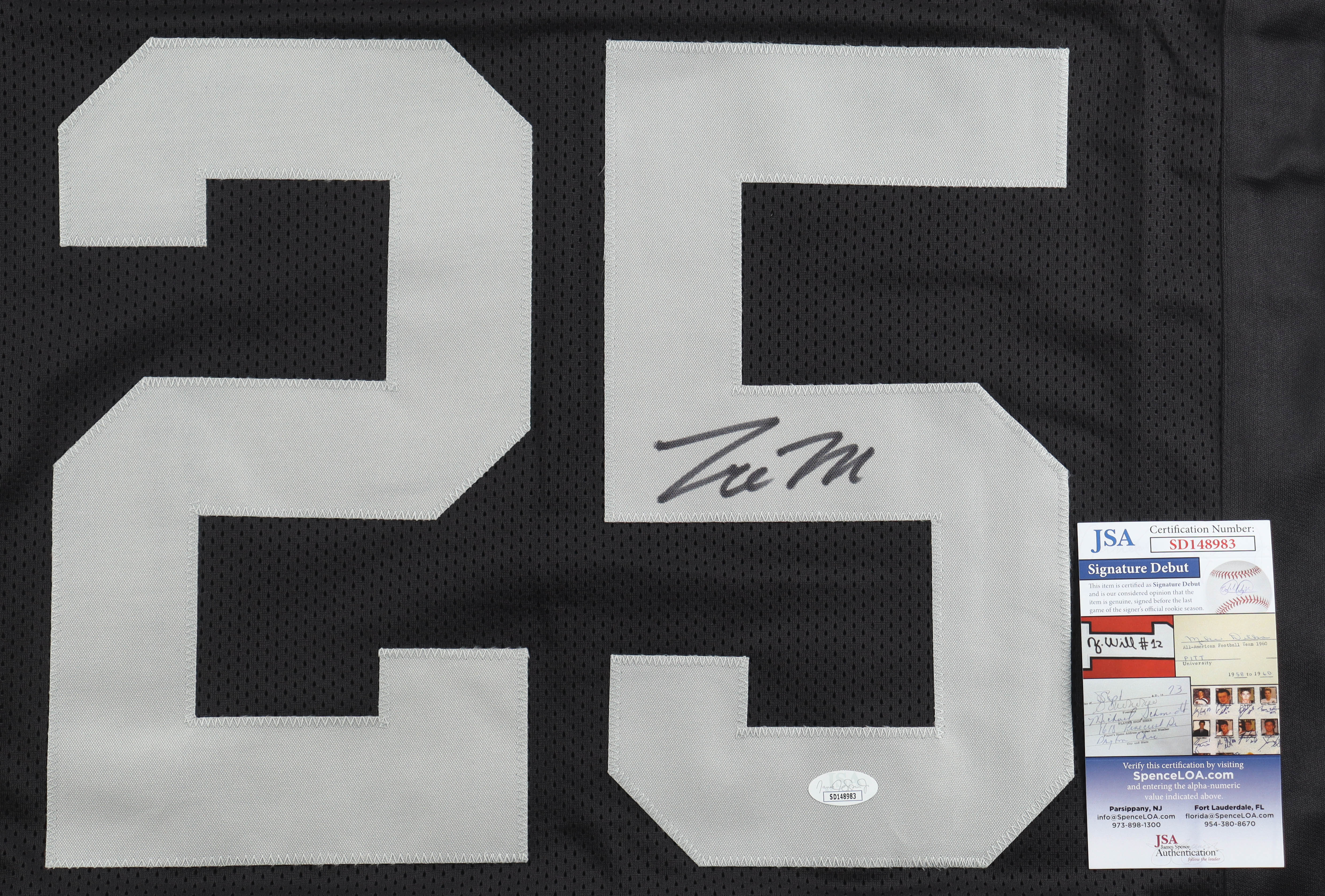 The autograph(s) includes an official James Spence Authentication (JSA) "Signature Debut" hologram and COA. "Signature Debut" is the autographed memorabilia equivalent to a rookie card. The JSA definition of a "Signature Debut" is as follows: "Any item that is autographed and received by JSA prior to the last game of the signer's official rookie season.