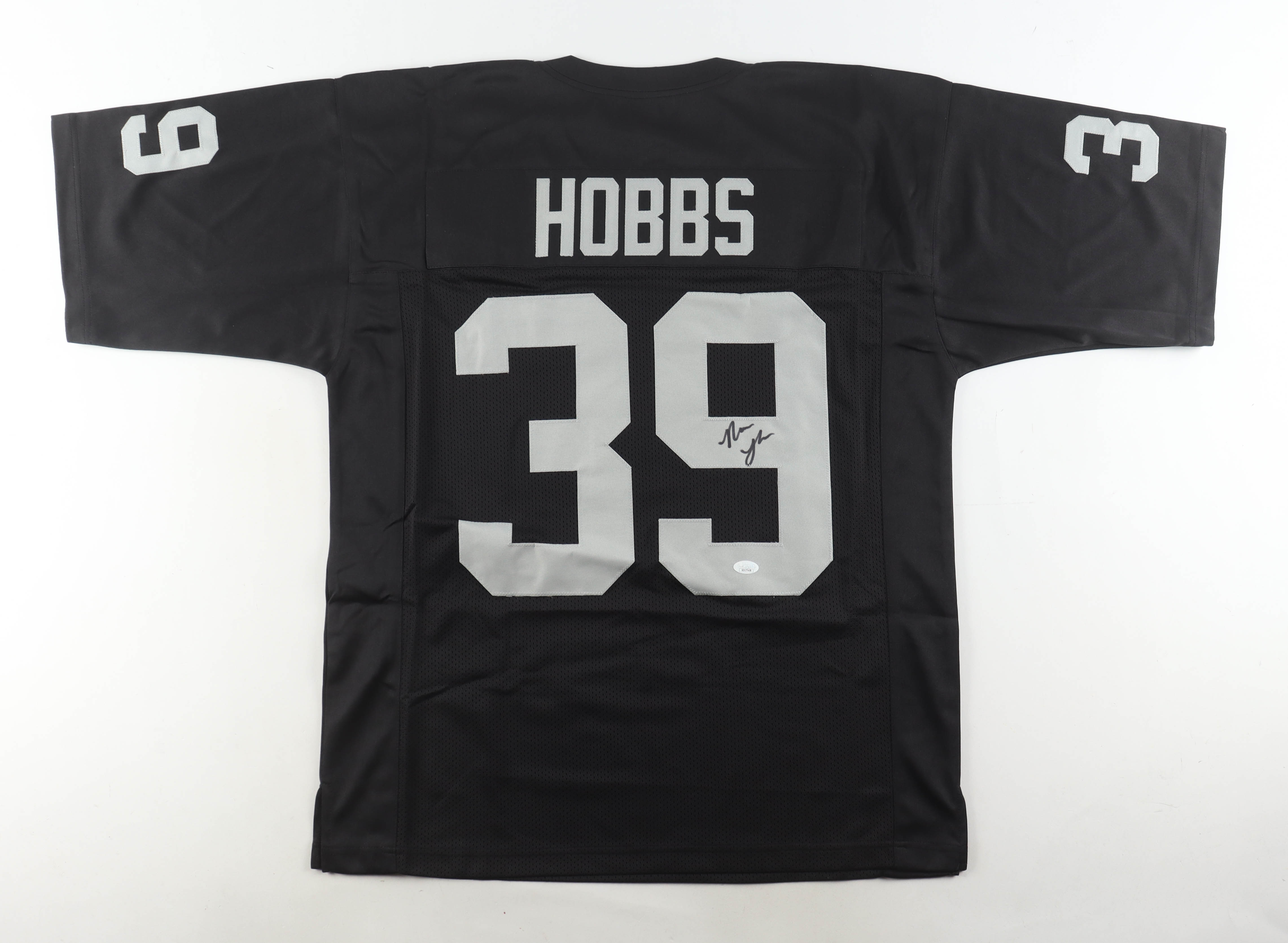 Custom jersey with everything sewn on, size XL. Hand-signed by Nate Hobbs.