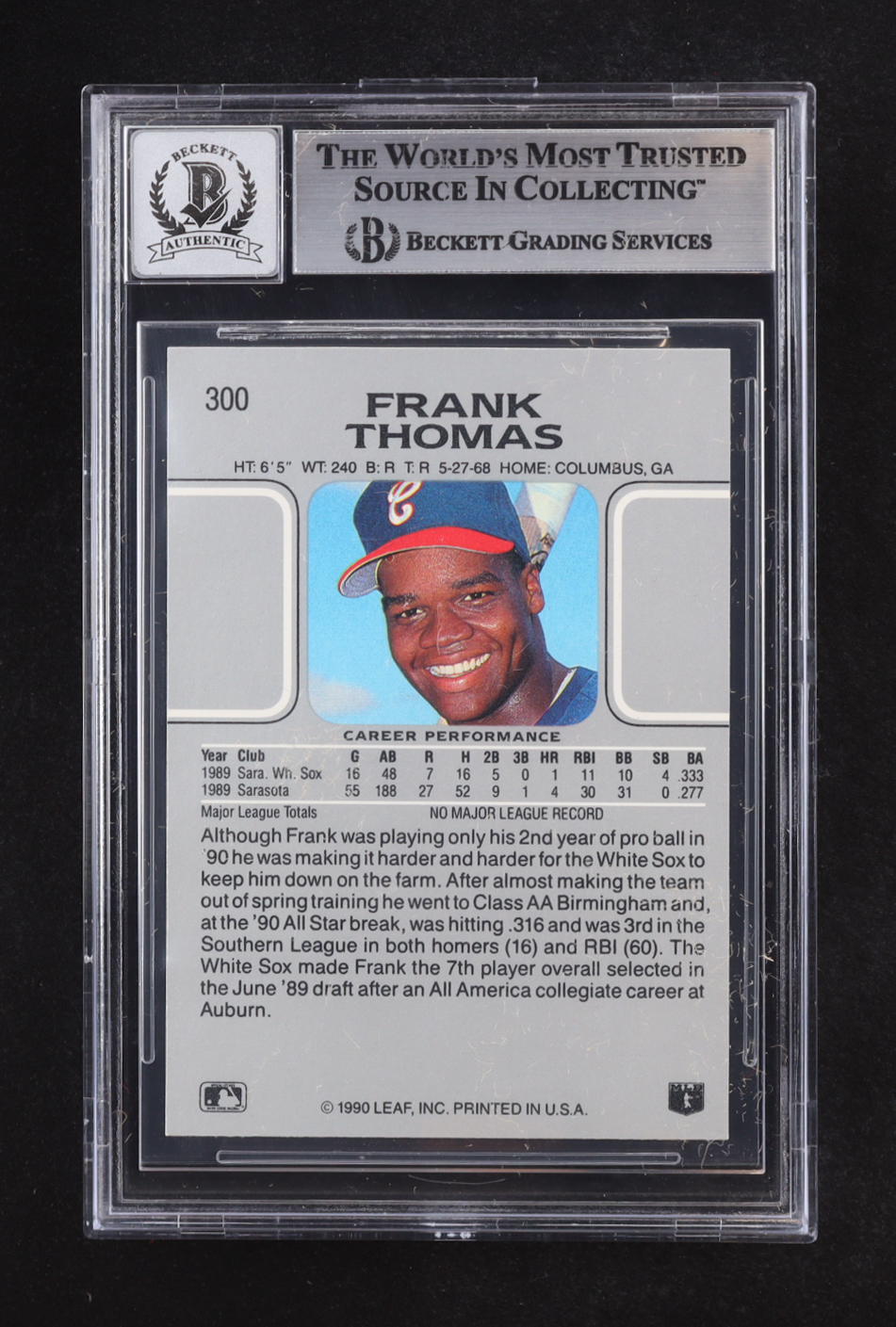 Frank Thomas Signed 1990 Leaf #300 RC (BGS | Autograph Grade 10)