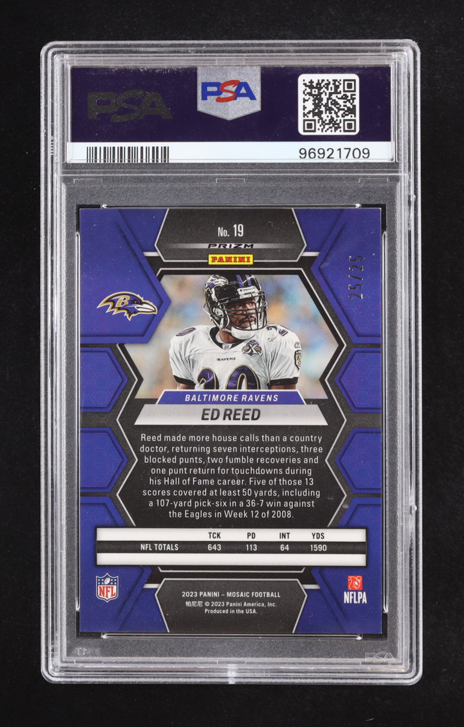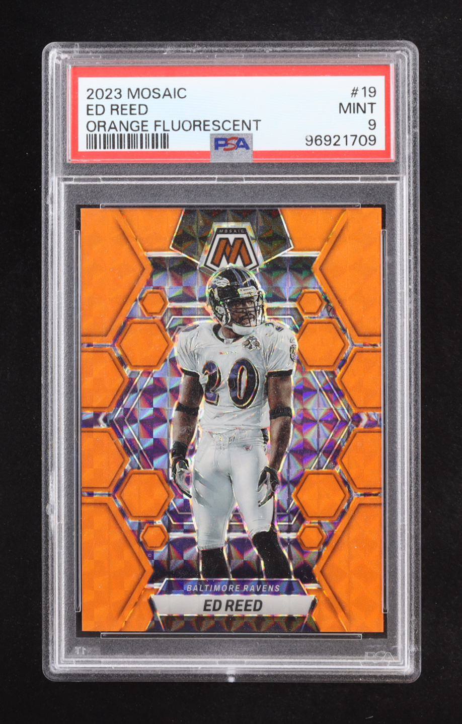 Ed Reed 2023 Panini Mosaic Mosaic Orange Fluorescent #19 #25/25 (PSA 9)