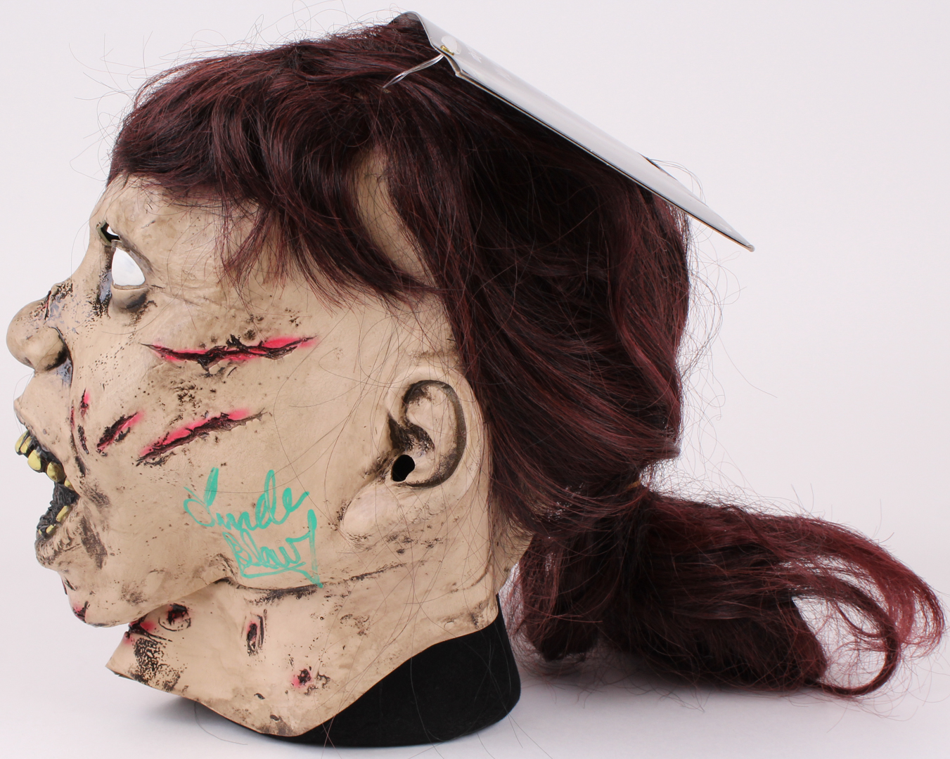 Rubber mask is hand-signed in green paint pen by Linda Blair (The Exorcist).