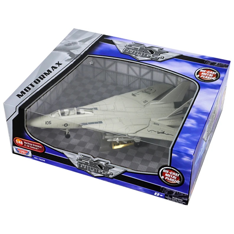 This Precision Diecast Collectible Model is that of America's Top Gun F-14 Naval Fighter! It features authentic pivoting swing wing design, a detailed cockpit and intricately detailed die cast metal body measuring 16 inches from nose to tail. The Top Gun Naval Fighter Weapons School is where the best of the best train to refine their elite flying skills.