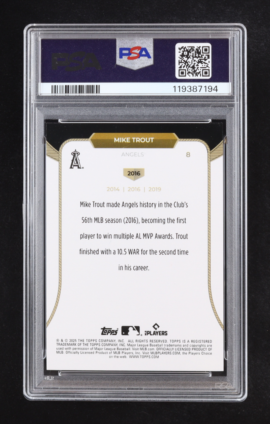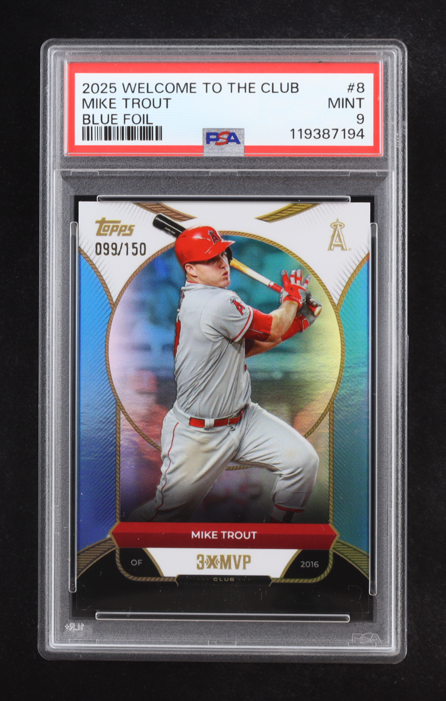 Mike Trout 2025 Topps Welcome to the Club 3X MVP Blue Foil #8 #099/150 (PSA 9)