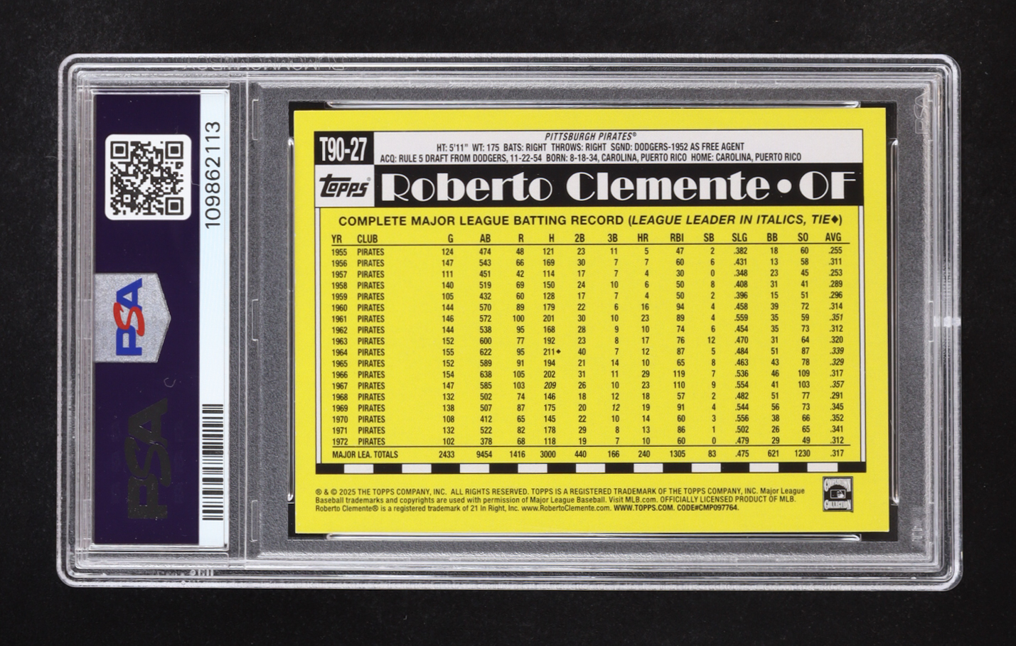Roberto Clemente 2025 Topps '90 Topps Pink #T9027 (PSA 8)