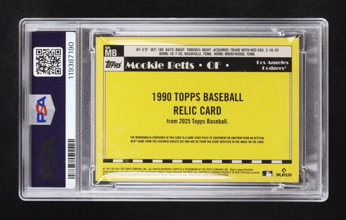 Mookie Betts 2025 Topps '90 Topps Relics #T90RMB (PSA 8)