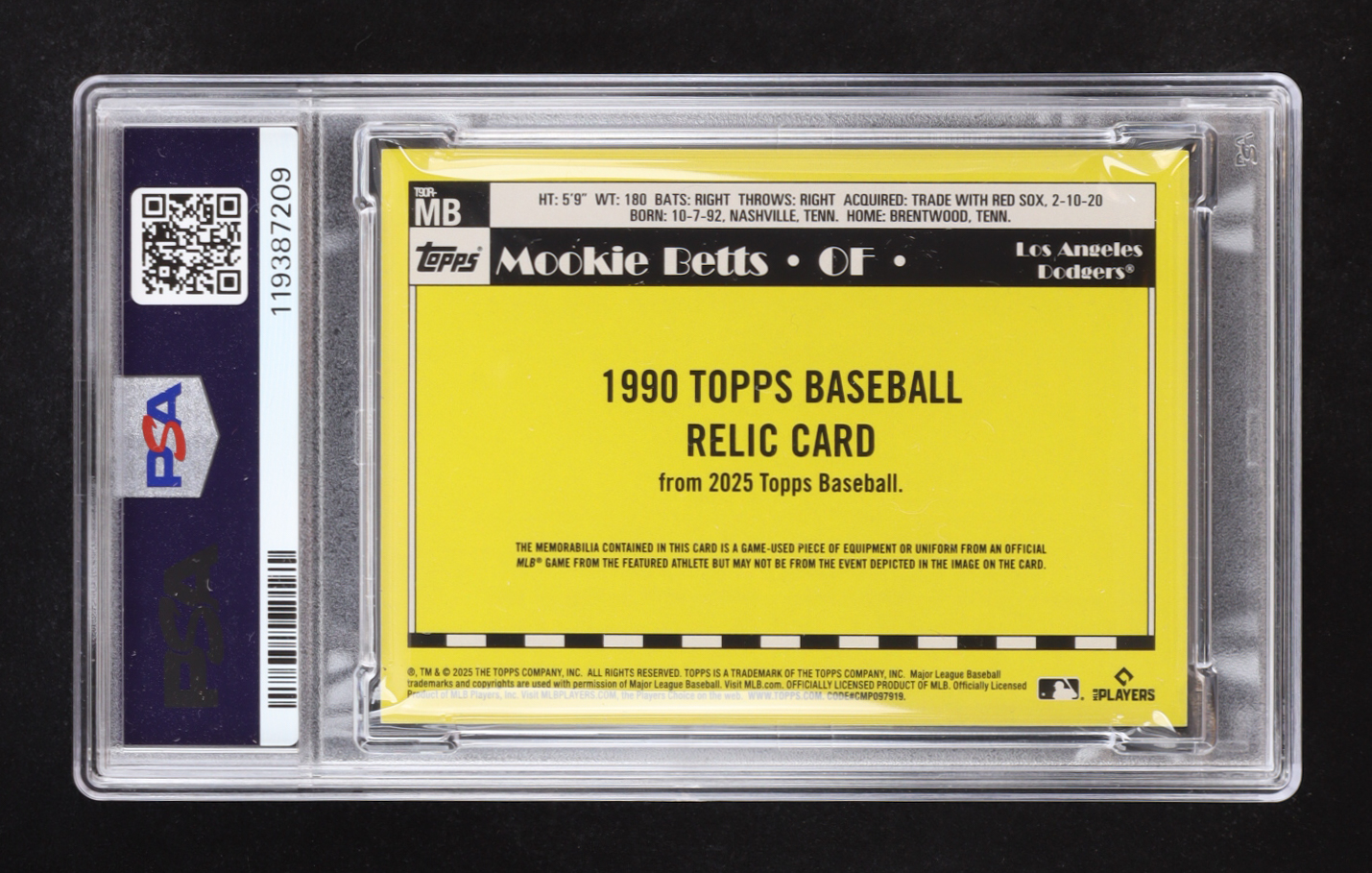 Mookie Betts 2025 Topps '90 Topps Relics #T90RMB (PSA 9)