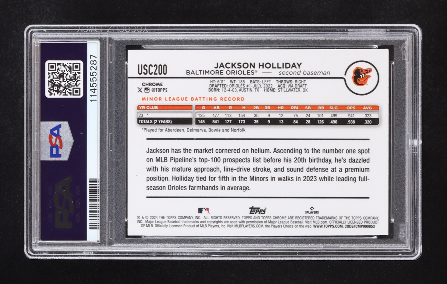 Jackson Holliday 2024 Topps Chrome Update Photo Variations #USC200 RC (PSA 8)