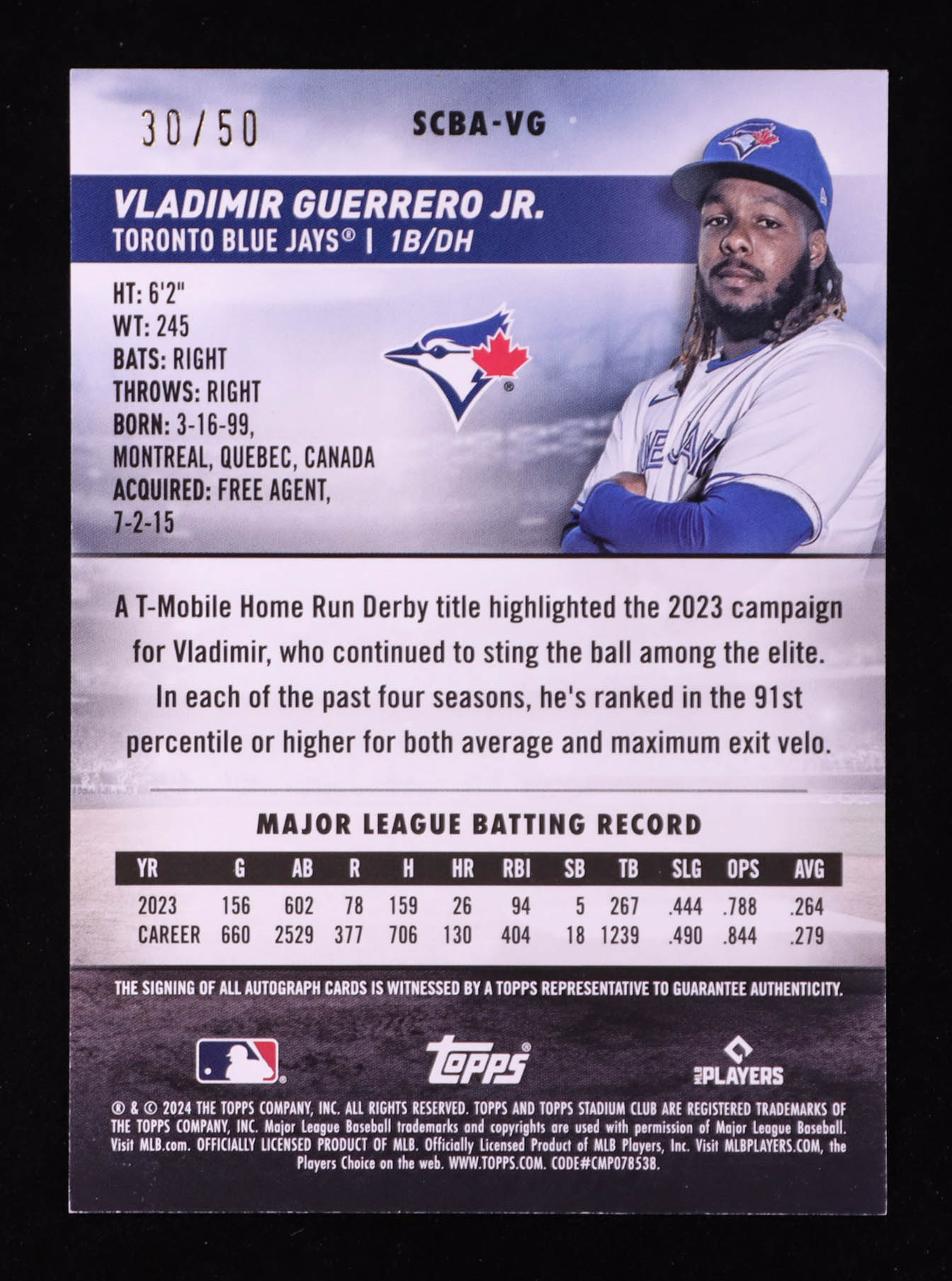 Vladimir Guerrero Jr. 2024 Stadium Club Autographs Red Foil #SCBAVG #30/50