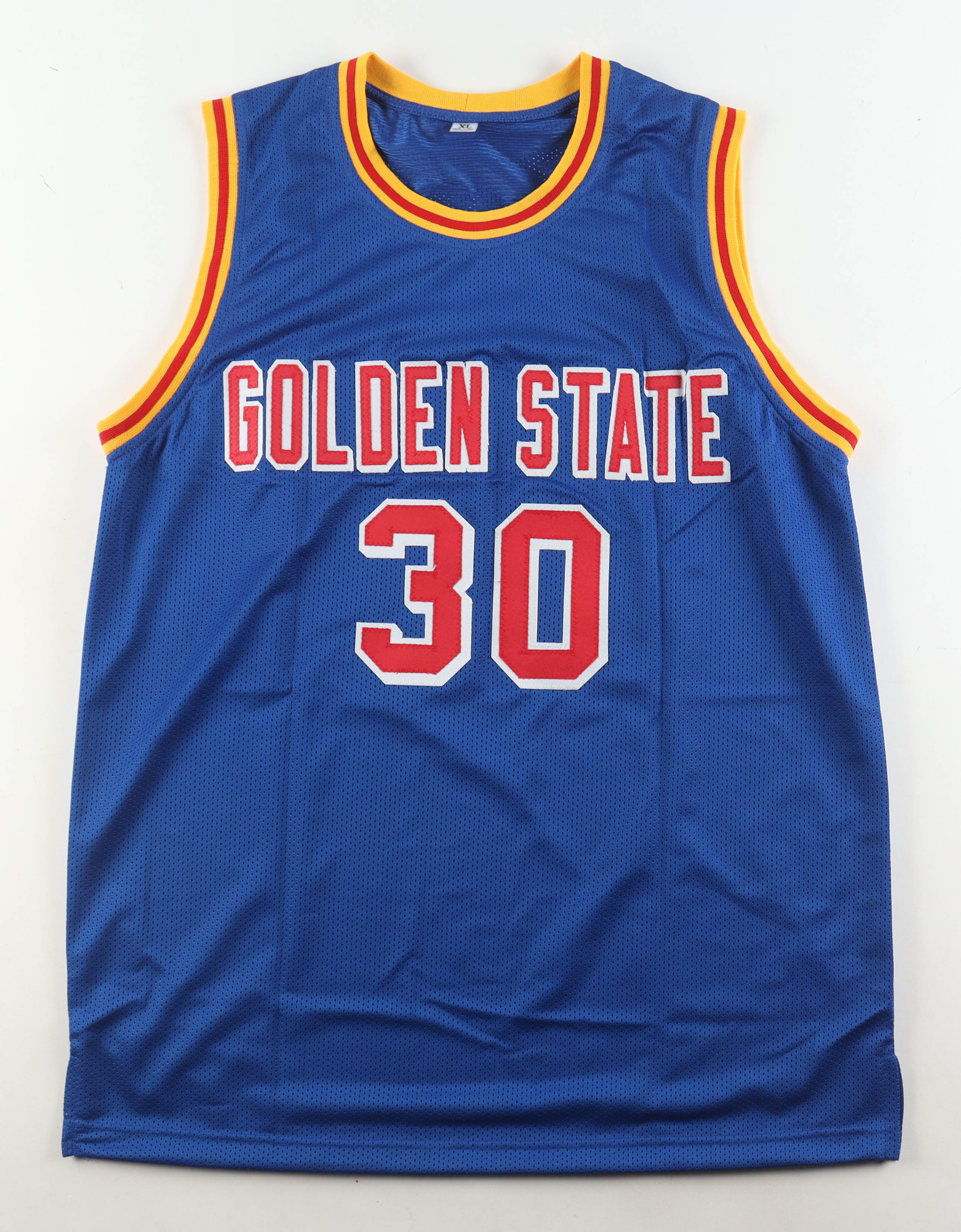 Custom jersey with everything sewn on, size XL. Hand-signed by Stephen Curry.