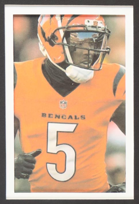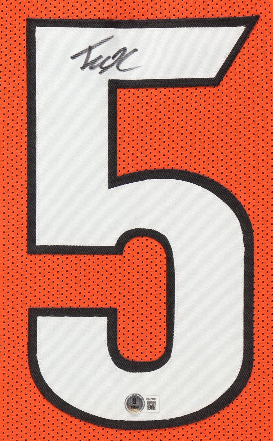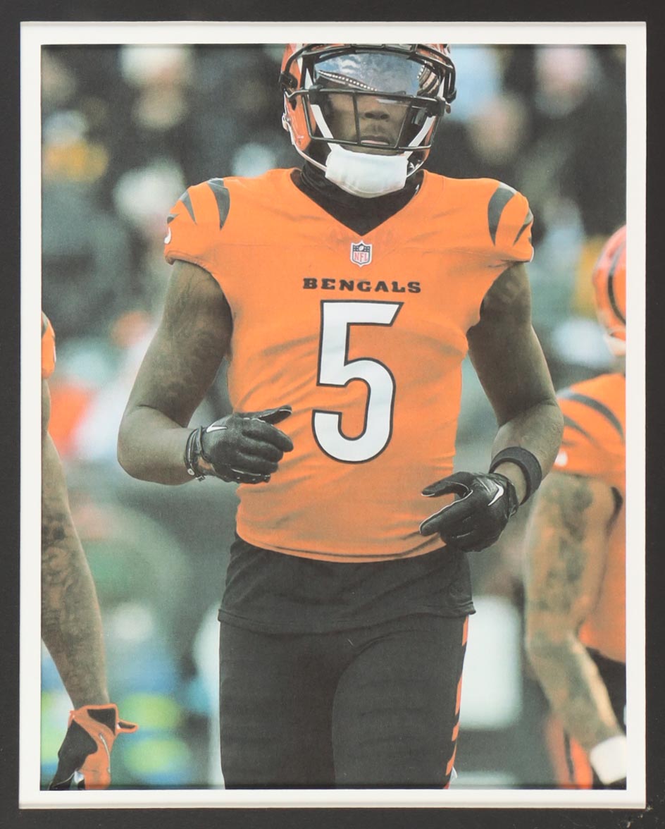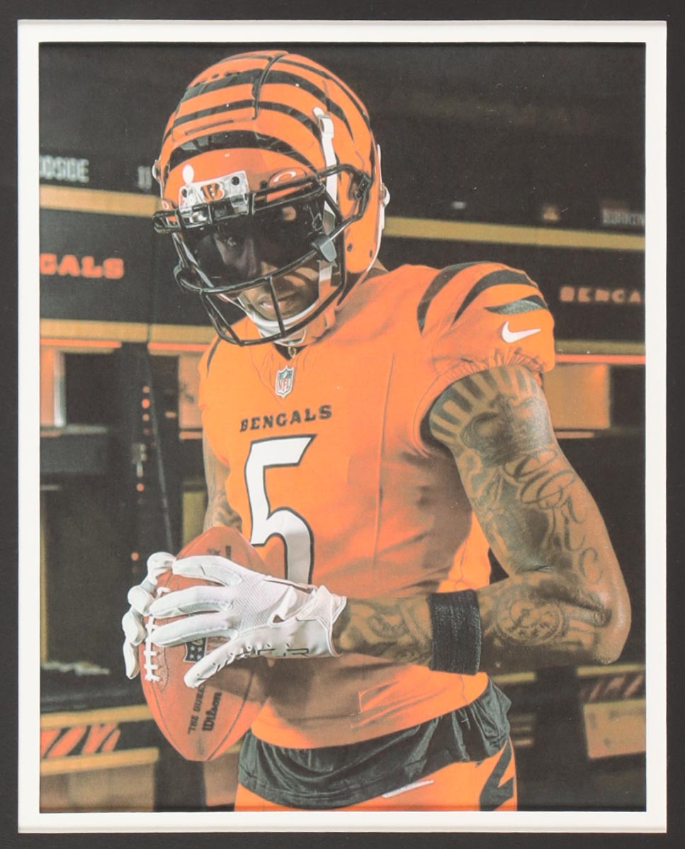 Custom frame measures 34" x 42" in size and features a jersey that has been hand-signed by Tee Higgins (Cincinnati Bengals).
