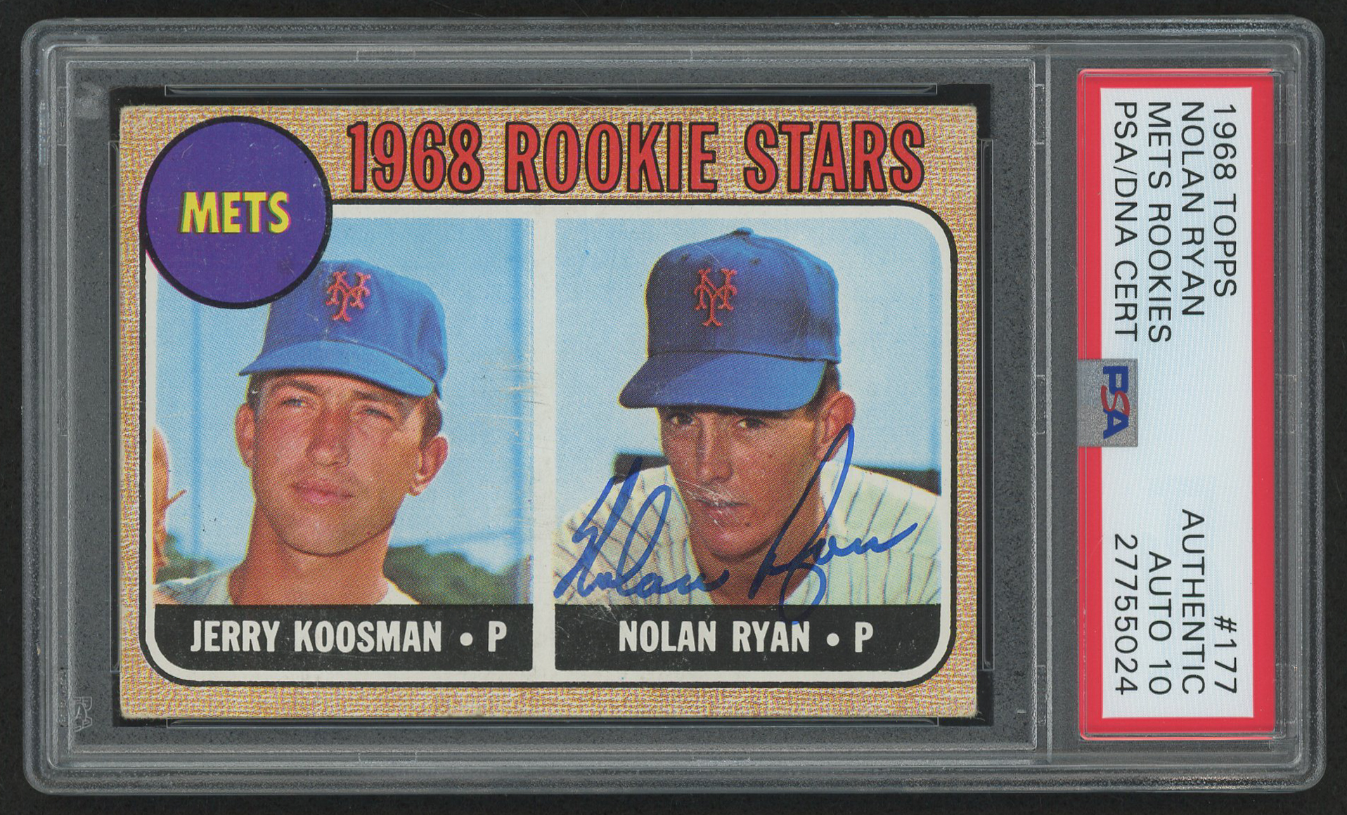 Nolan Ryan Signed 1968 Topps #177 RC (PSA Encapsulated & Auto Graded 10)