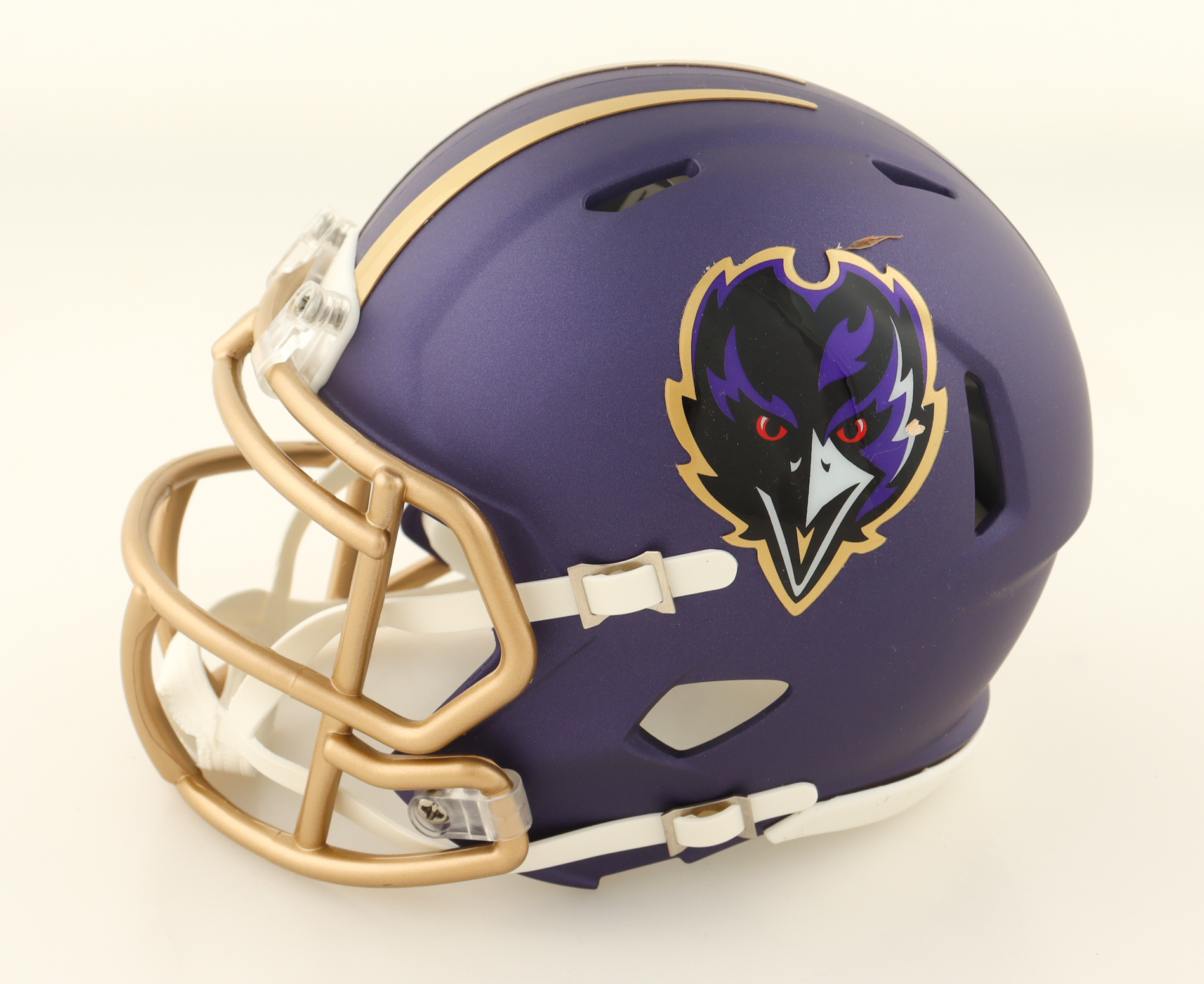 Riddell Baltimore Ravens Alternate Speed mini helmet has been hand-signed by Zay Flowers.