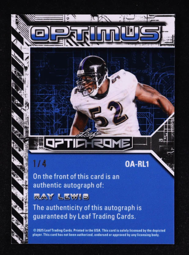 Ray Lewis 2025 Leaf Optichrome Optimus Autographs Lazer Orange #OARL1 #1/4