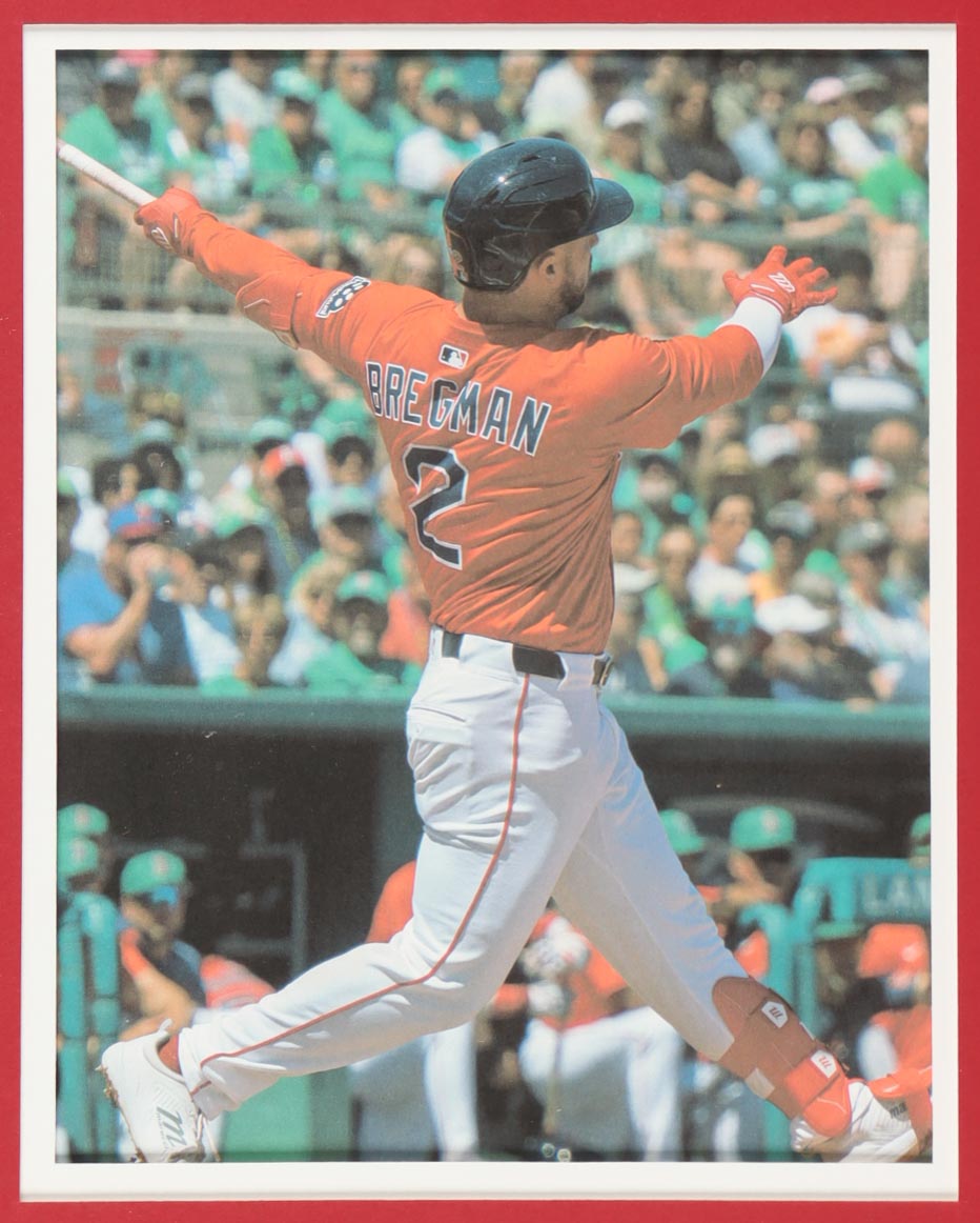 Custom frame measures approximately 34" x 42" in size and features a jersey that has been hand-signed by Alex Bregman.