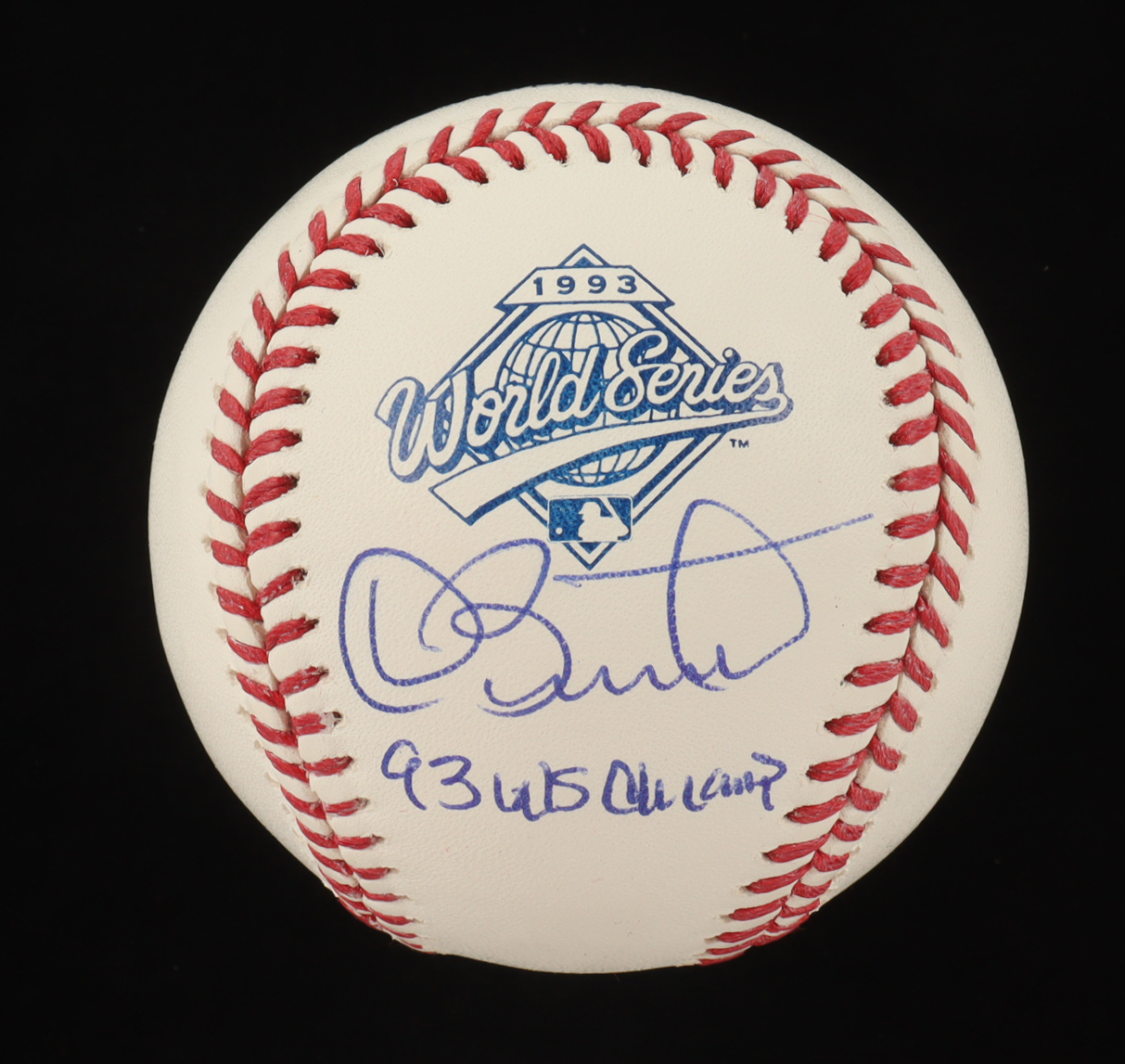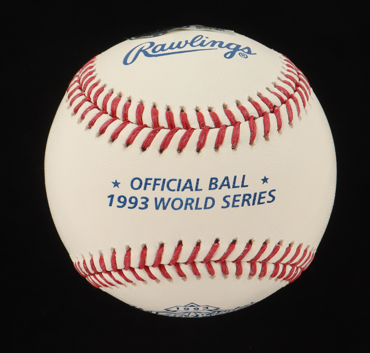 Rawlings Official 1993 World Series logo baseball. Hand-signed and inscribed by Dave Stewart (Toronto Blue Jays).