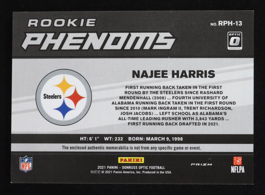 Najee Harris 2021 Donruss Optic Rookie Phenoms Jerseys Horizontal Red #13 RC