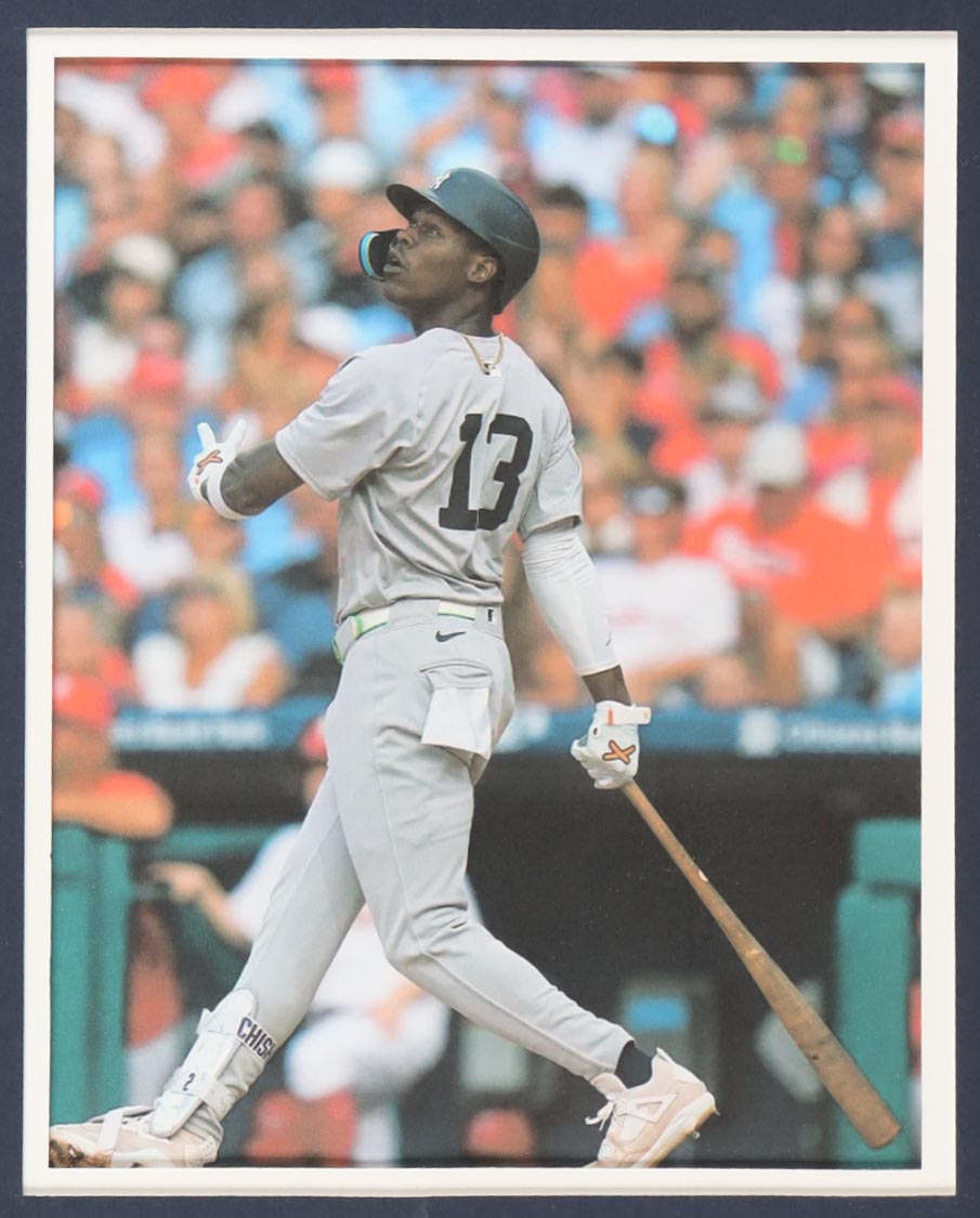 Custom frame measures approximately 34" x 42" in size and features a jersey that is hand-signed by Jazz Chisholm Jr.
