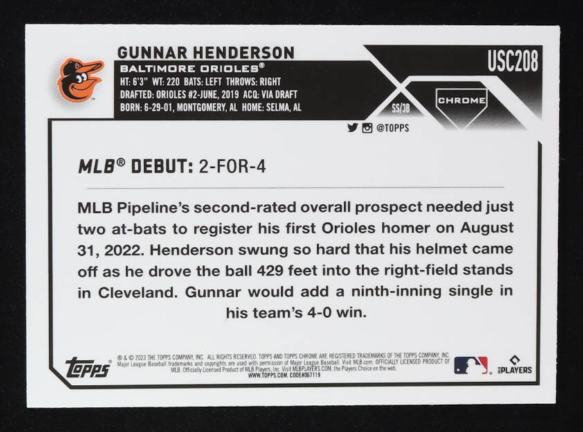 Gunnar Henderson 2023 Topps Chrome Update Pink Refractors #USC208 RC