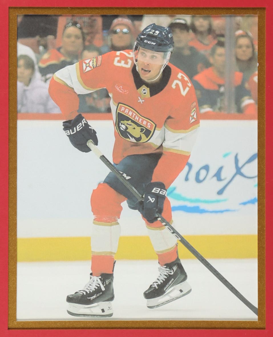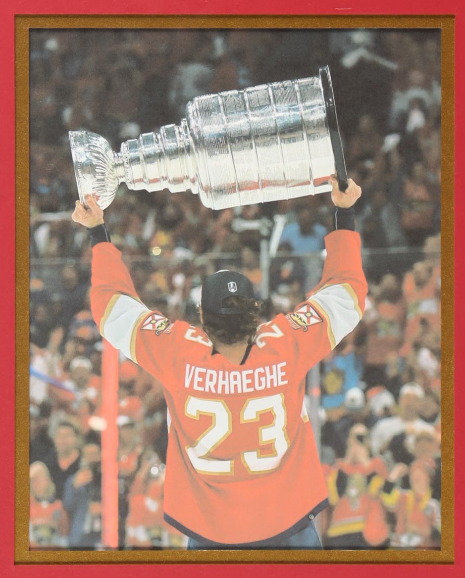 Custom frame measures approximately 34" x 42" in size and features a jersey that has been hand-signed by Carter Verhaeghe.