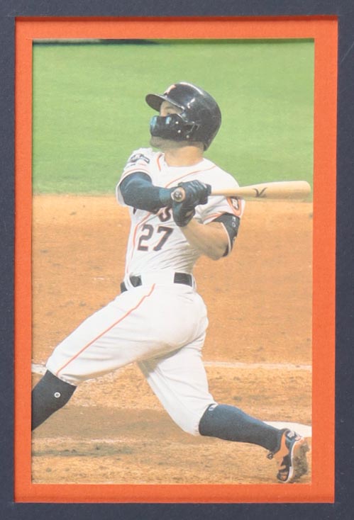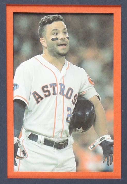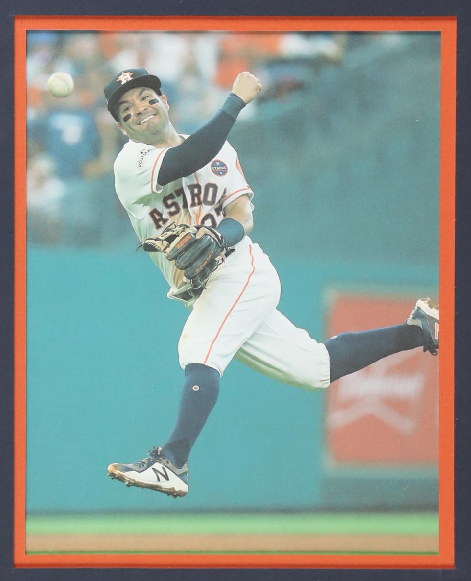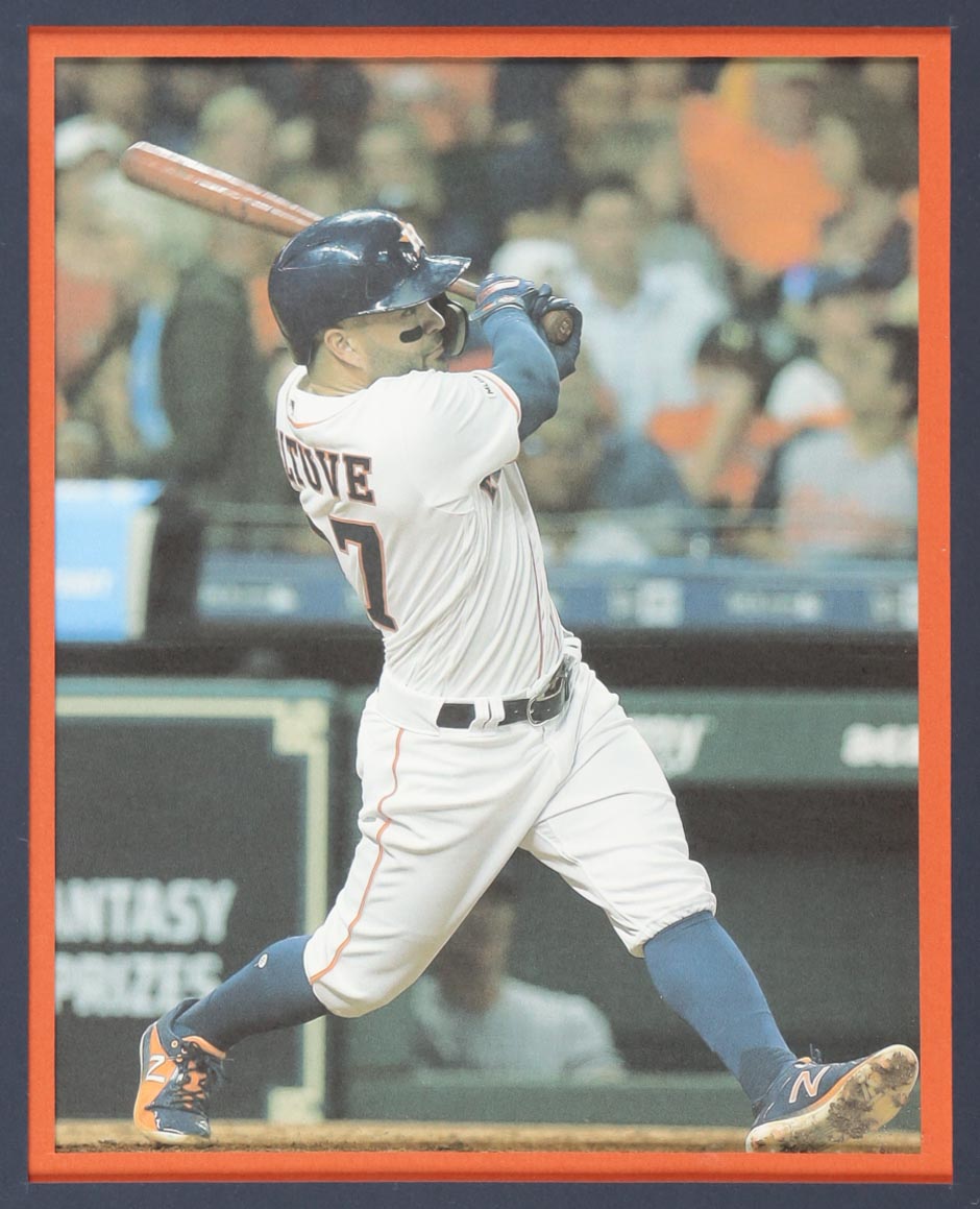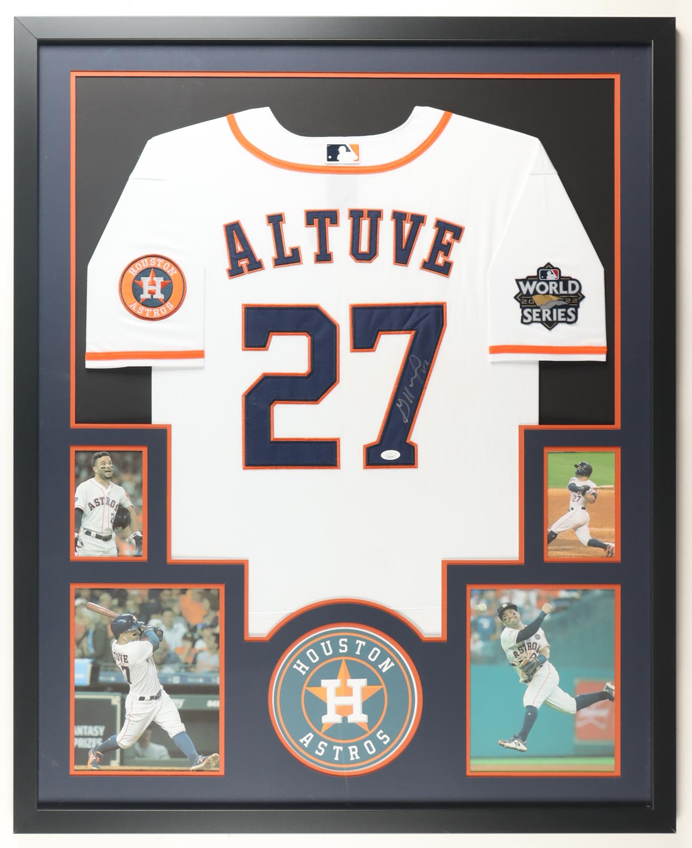 Custom frame measures approximately 34" x 42" in size and features a jersey that has been hand-signed by Jose Altuve.
