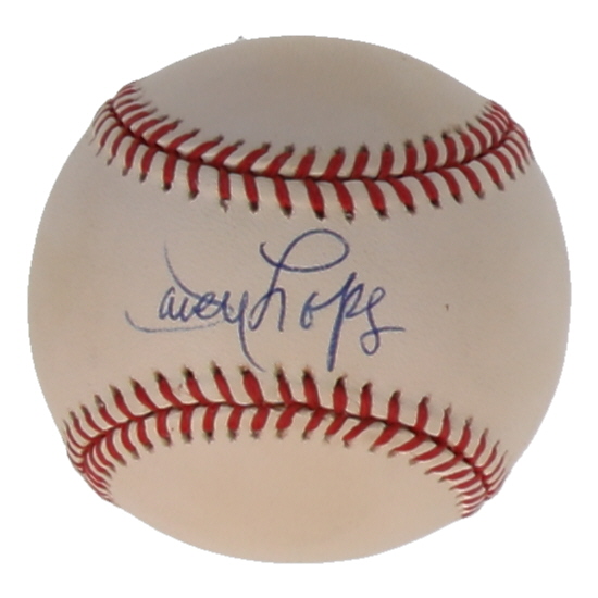 Rawlings Official National League Baseball. Hand-signed by Davey Lopes (Los Angeles Dodgers). Please note, there are stains throughout the baseball.