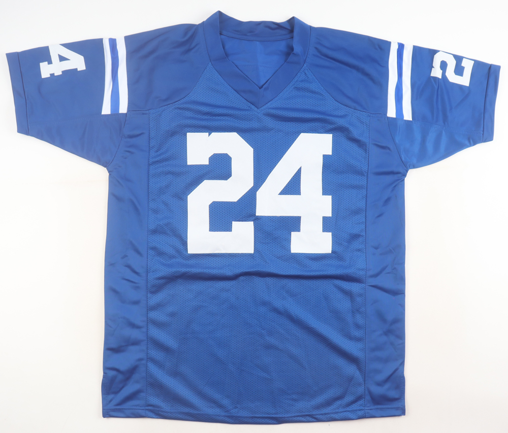 Custom jersey with everything sewn on, size XL. Hand-signed and inscribed by Lenny Moore (HOF).