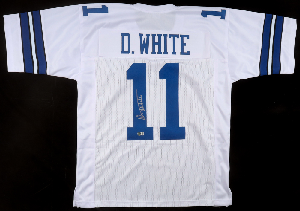 Custom jersey with everything sewn on, size XL. Hand-signed by Danny White (Dallas Cowboys).