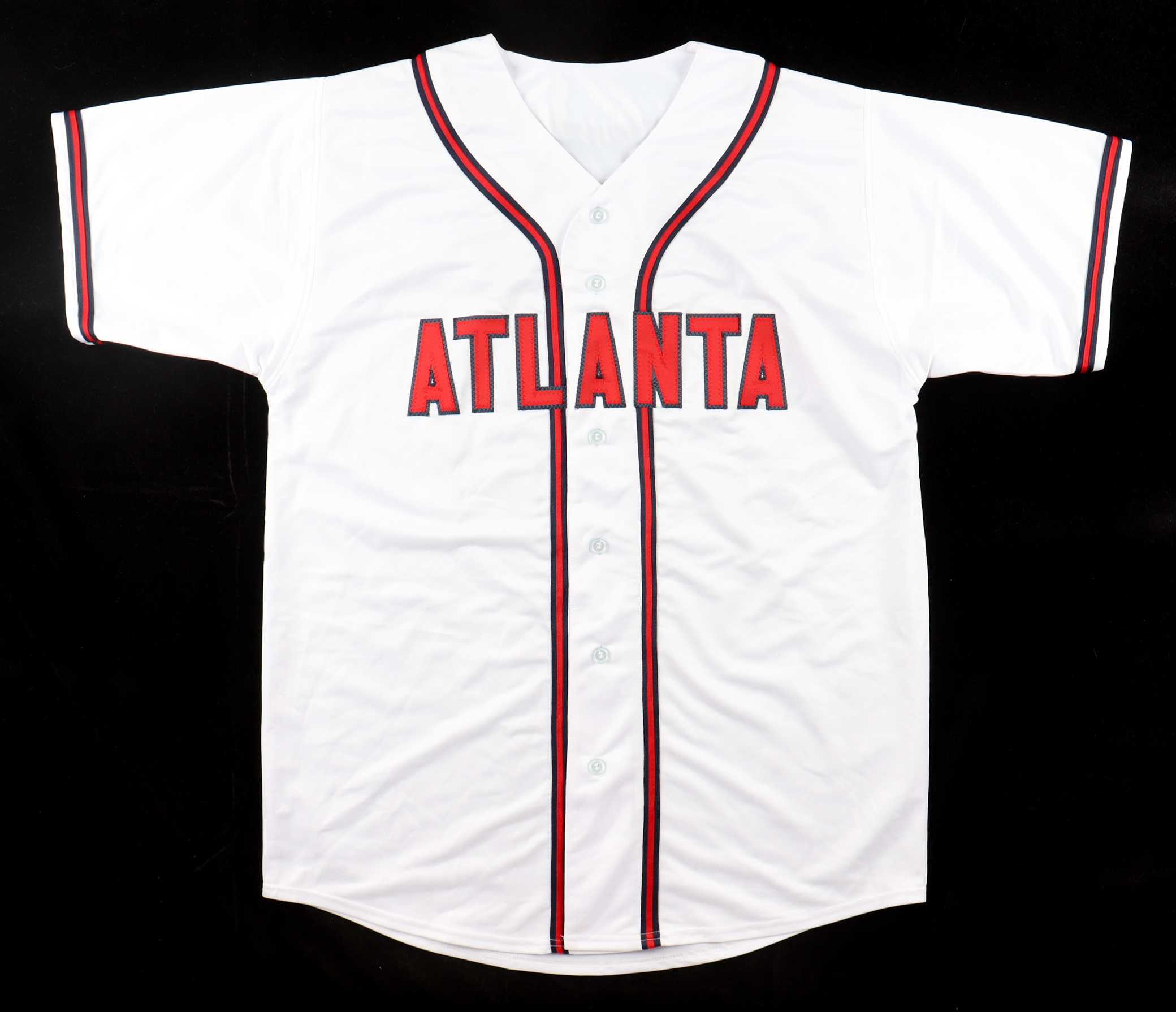 Custom jersey. Everything is sewn on, size XL. Hand-signed and inscribed by John Smoltz (HOF).
