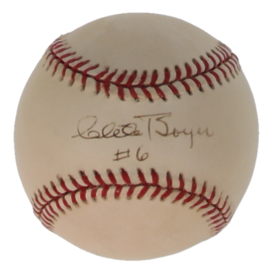Rawlings Official National League Baseball. Hand-signed by Clete Boyer (D. 2007, New York Yankees). Please note, the baseball is naturally toning and stained.