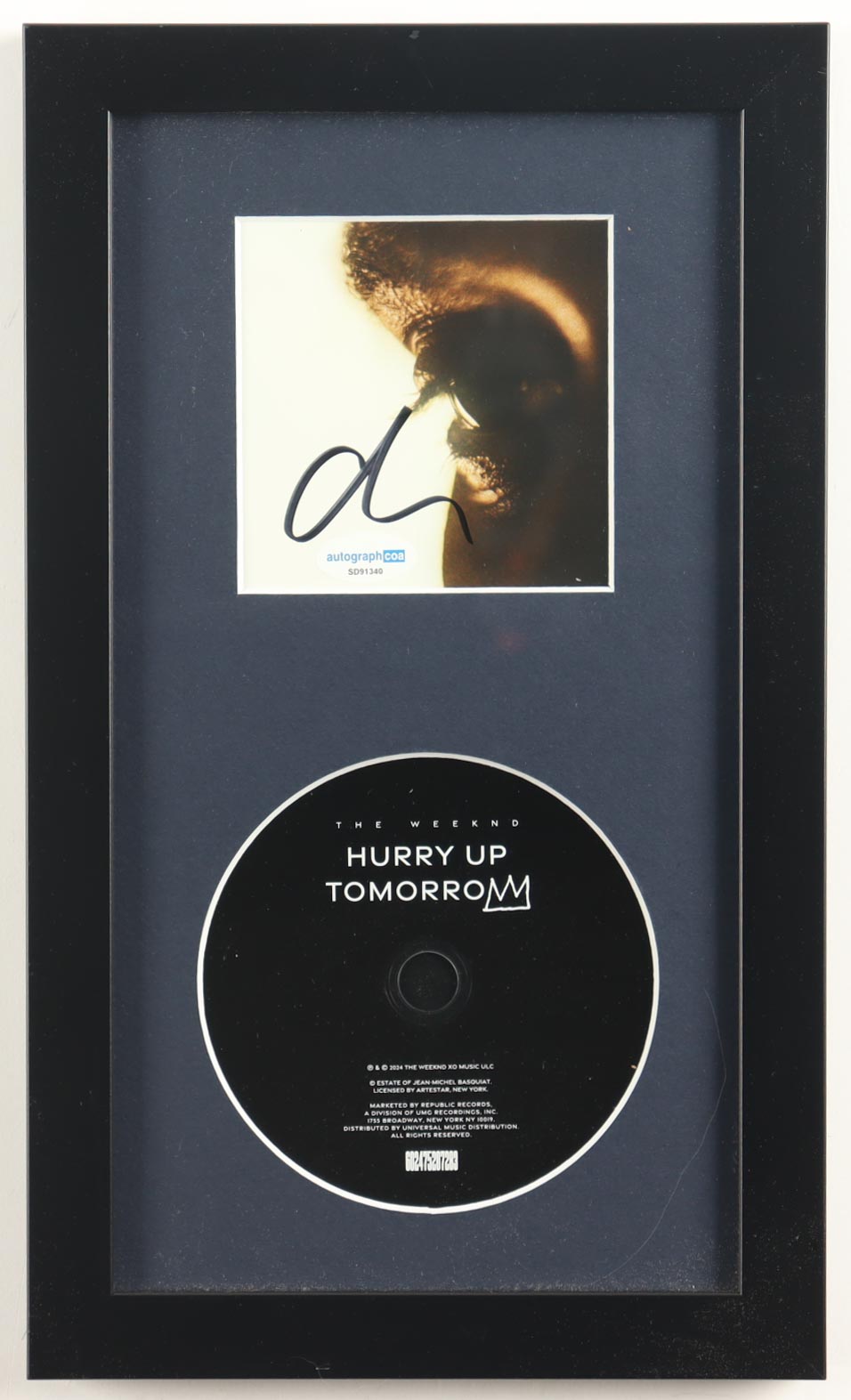 Custom frame measures approximately 8" x 13.5" in size. Features a "Hurry Up Tomorrow" CD insert that has been hand-signed by The Weeknd. Please note, the disc is included as shown.