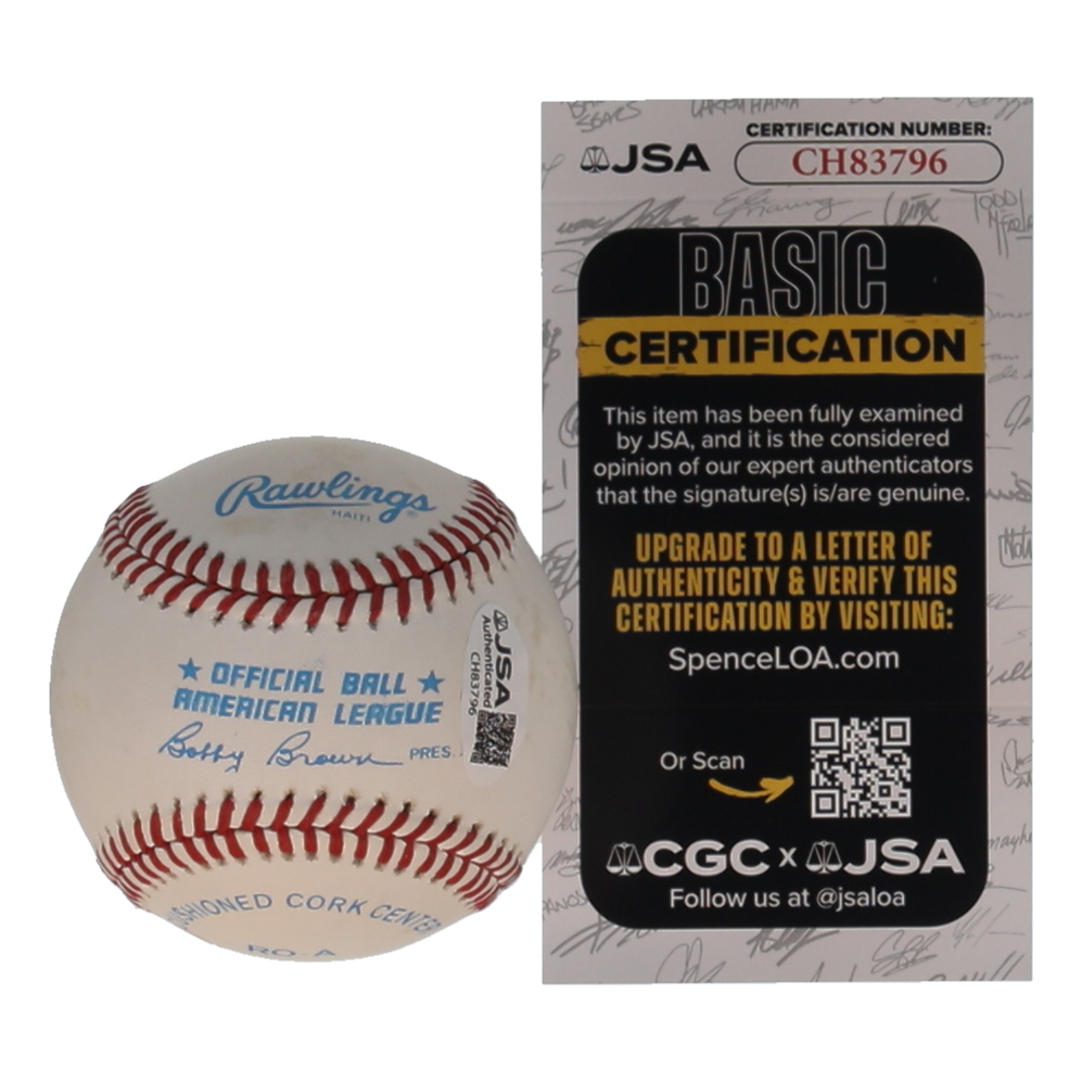 Rawlings Official American League Baseball. Hand-signed by Reggie Jackson (Oakland Athletics, HOF). Please note, the baseball is naturally toning and stained.