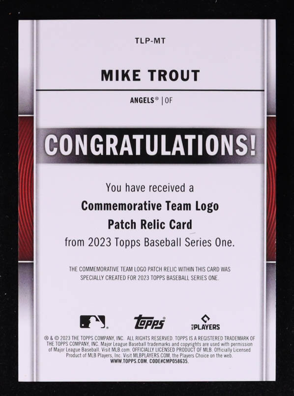 Mike Trout 2023 Topps Team Logo Commemorative Patch #TLPMT